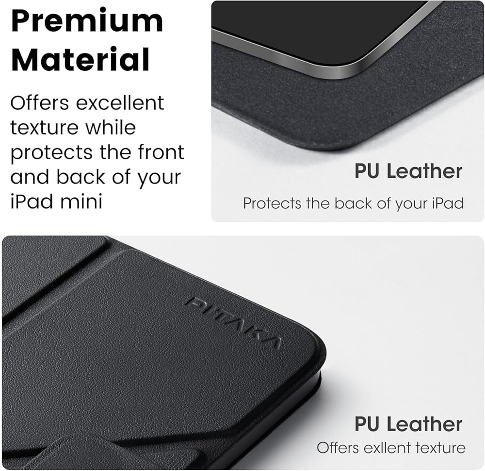 PITAKA for iPad mini 7 Case A17 Pro (2024), Compatible with iPad mini 7 (2024) /iPad mini 6 (2021), Portrait/Landscape Magnetic Case with Pencil Holder, 4 Standing Angles and - Black