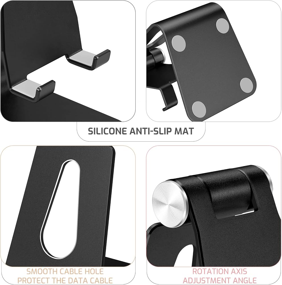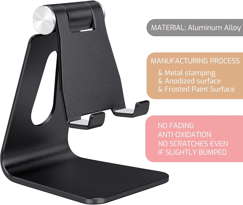 Adjustable Aluminum Alloy Cell Phone Stand,Desktop Metal Phone Holder,Smartphone Cradle,Black