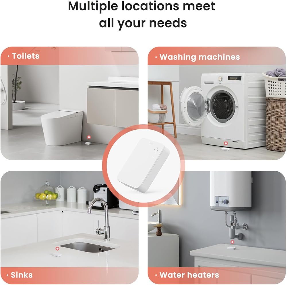 Easy to Install: Our water alarm leak detector is ideal for use in near toilets, washing machines, sinks, water heaters, or any potential leak spots. Please stick the water leak detection on a clean, dry surface to reduce false positives