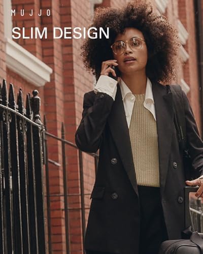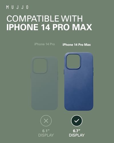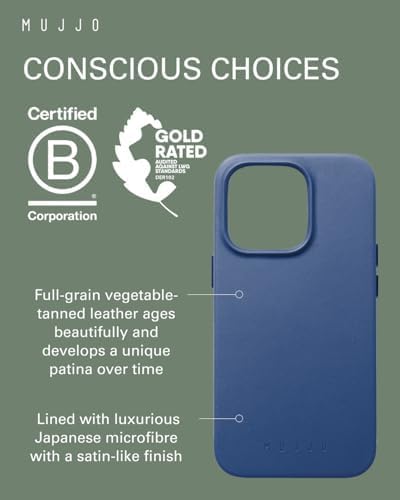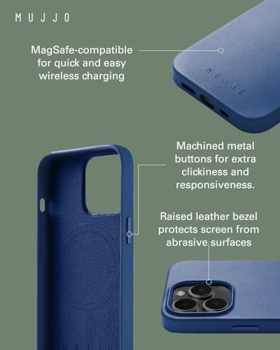 Mujjo Leather Phone Case - Fits iPhone 14 Pro Max - MagSafe Compatible - Premium European Leather - Enhanced Phone & Camera Lens Protection - Crafted with Recycled Materials - Slim Profile - Blue