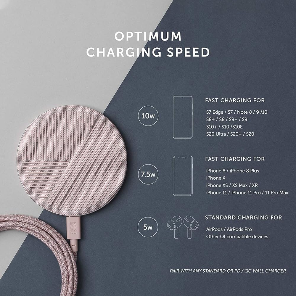 An instant classic. Our signature wireless pad, enhanced with genuine Italian leather that's hand-carved, skived, then carefully wrapped for a timeless finish that'll only get better with time. Discover more about the Classic Leather Collection. Shipped in responsible packaging - Learn more Powers AirPods up to 5W, iPhones up to 7.5W & other Qi compatible devices up to 10W Crafted with consciously sourced genuine Italian leather & aircraft-grade aluminum Designed to age beautifully with a patina uniquely yours Hassle-free charging through cases up to 3mm Comes with a 6.5ft USB-A to USB-C cable Responsible Packaging 2-Year Limited Warranty 14-Day Returns Secure Checkout An instant classic. Our signature wireless pad, enhanced with genuine Italian leather that's hand-carved, skived, then carefully wrapped for a timeless finish that'll only get better with time. Discover more about the Classic Leather Collection. Shipped in responsible packaging - Learn more Powers AirPods up to 5W, iPhones up to 7.5W & other Qi compatible devices up to 10W Crafted with consciously sourced genuine Italian leather & aircraft-grade aluminum Designed to age beautifully with a patina uniquely yours Hassle-free charging through cases up to 3mm Comes with a 6.5ft USB-A to USB-C cable This product is compatible with: iPhone 8 or later iPhone SE (2020) iPhone 13 mini AirPods Pro AirPods 2nd Generation (also known as AirPods with Wireless Charging case) All other Qi-compatible devices This product is NOT compatible with: iPhone 13 / 13 Pro / 13 Pro Max iPhone 7 or earlier AirPods 1st Generation Any iPad models Any Apple Watch models Output: Total Max Output: 10W Qi Wireless: 10W Max Verified & optimised for iPhones 8 or later. 7.5W Fast Charging Input: USB-C: 5V/2A; 9V/1.67A Included in the box: Drop Classic Leather Wireless Charger 6.5-foot (2 meter) USB-A to USB-C Cable Product materials: ABS+PC, Aluminium, Silicone Rubber, Leather, Nylon, TPE Connections: USB-C Power Source: Not included (use the included USB-A to USB-C, or USB-C to USB C cable, to charge via a wall charger) Product Dimensions: Diameter: 3.54 in / 9 cm Width: 3.54 in / 9 cm Depth: 0.42 in / 1.09 cm Weight: 0.34 lbs / 0.16 kg