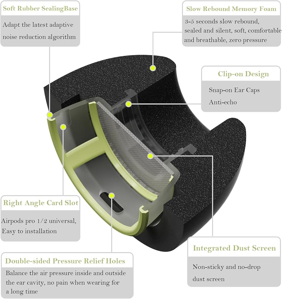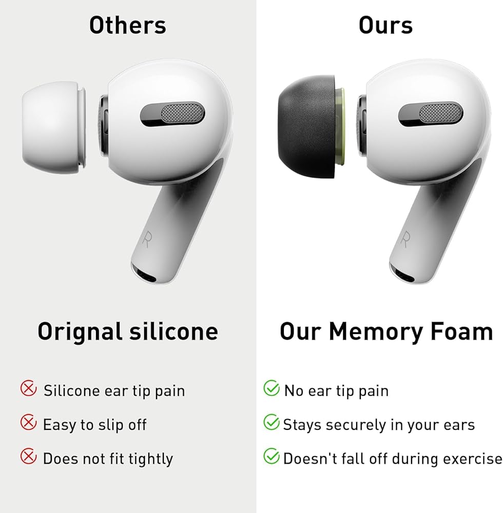 Durability and Grip: Our premium memory foam not only offers exceptional comfort but also provides a strong grip that keeps your earbuds securely in place, even during intense physical activities. Say goodbye to constantly adjusting your earbuds