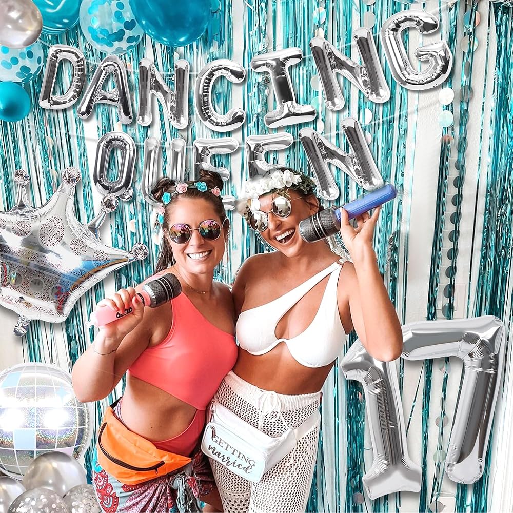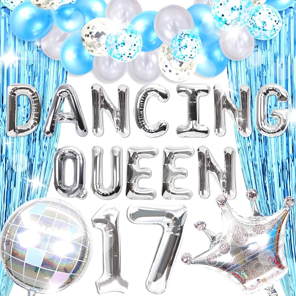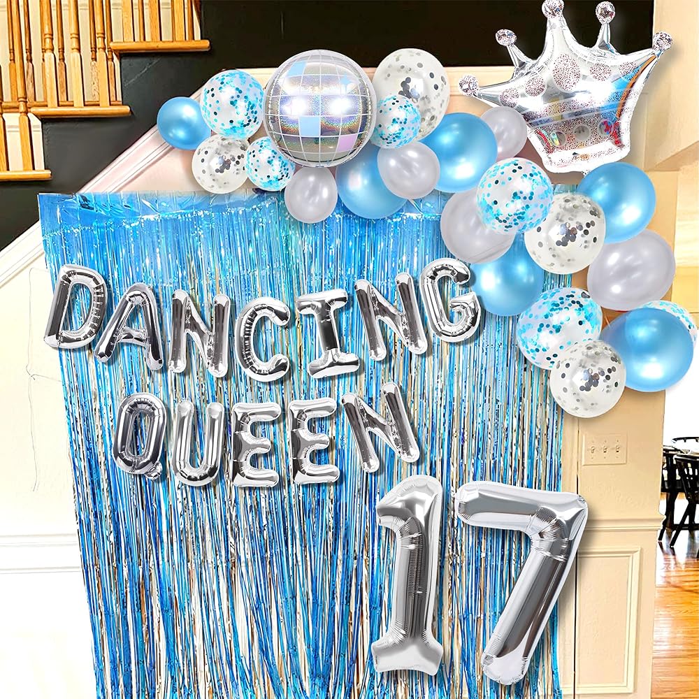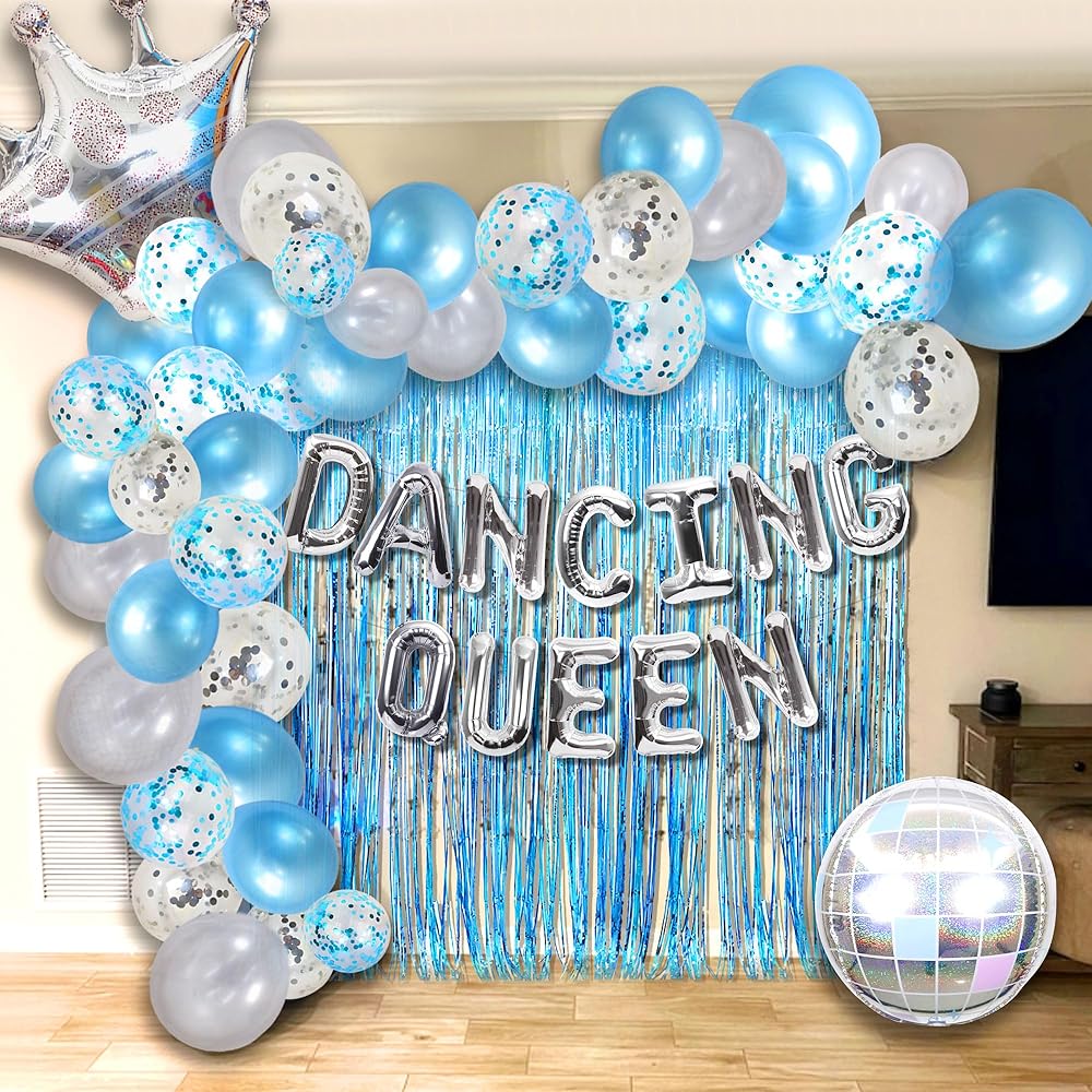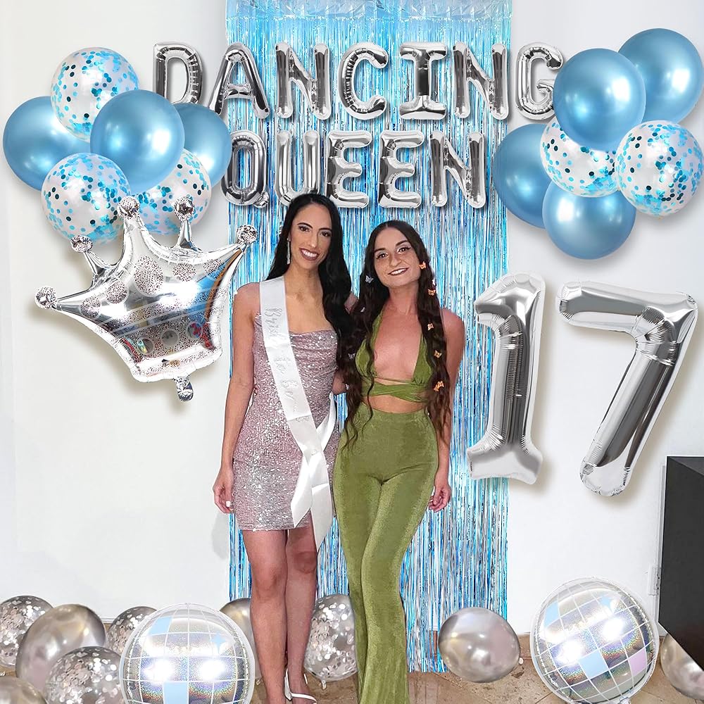37 PCS Dancing Queen 17 Balloons Dancing Queen Mamma Mia Party Decorations 17 Birthday Party Decoration Sliver Blue 17 Birthday Decoration Mamma Mia Party Supplies
