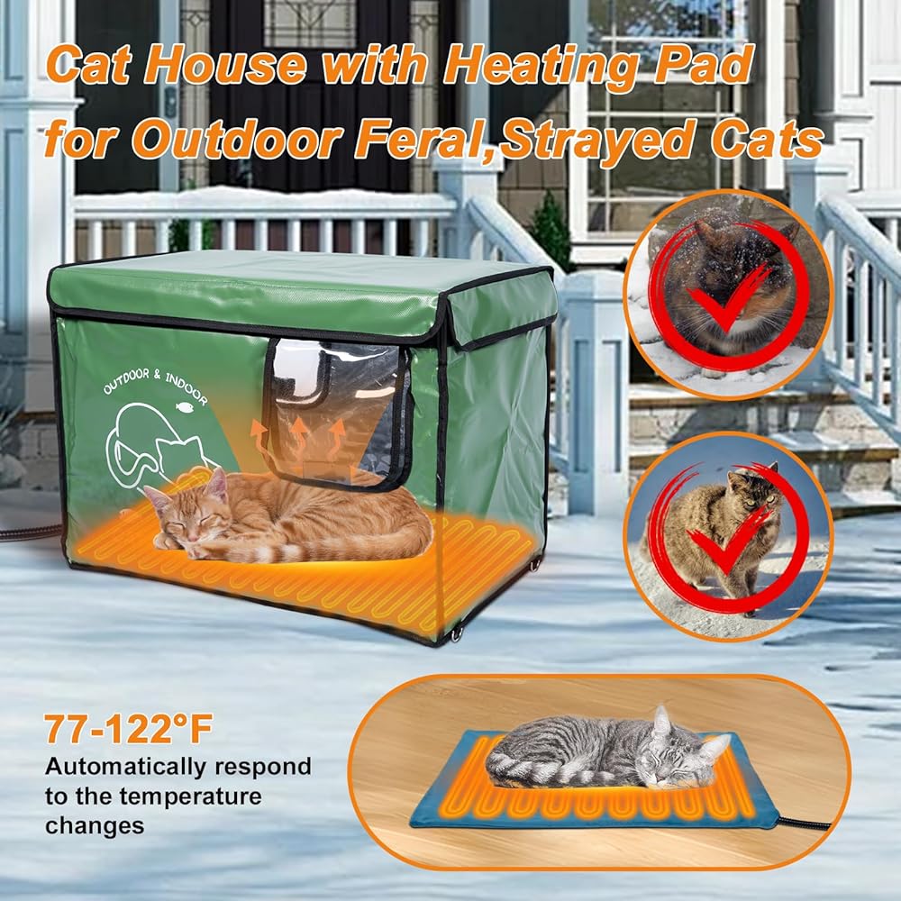 Heating Pad:The cat shelter with heating pad will offer cats comfortably warm even in freezing temperatures. inner with aluminum foil insulation, keep cats snug and warm