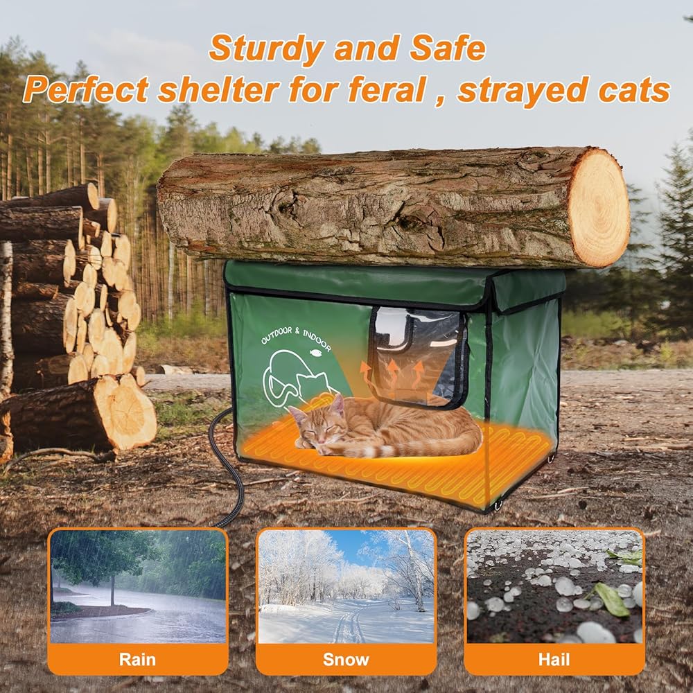 Upgraded Oxford Cloth: The outer fabric of cat houses outdoor is made of 900D oxford cloth with coating,better waterproof . inner with aluminum foil insulation, keep cats snug and warm