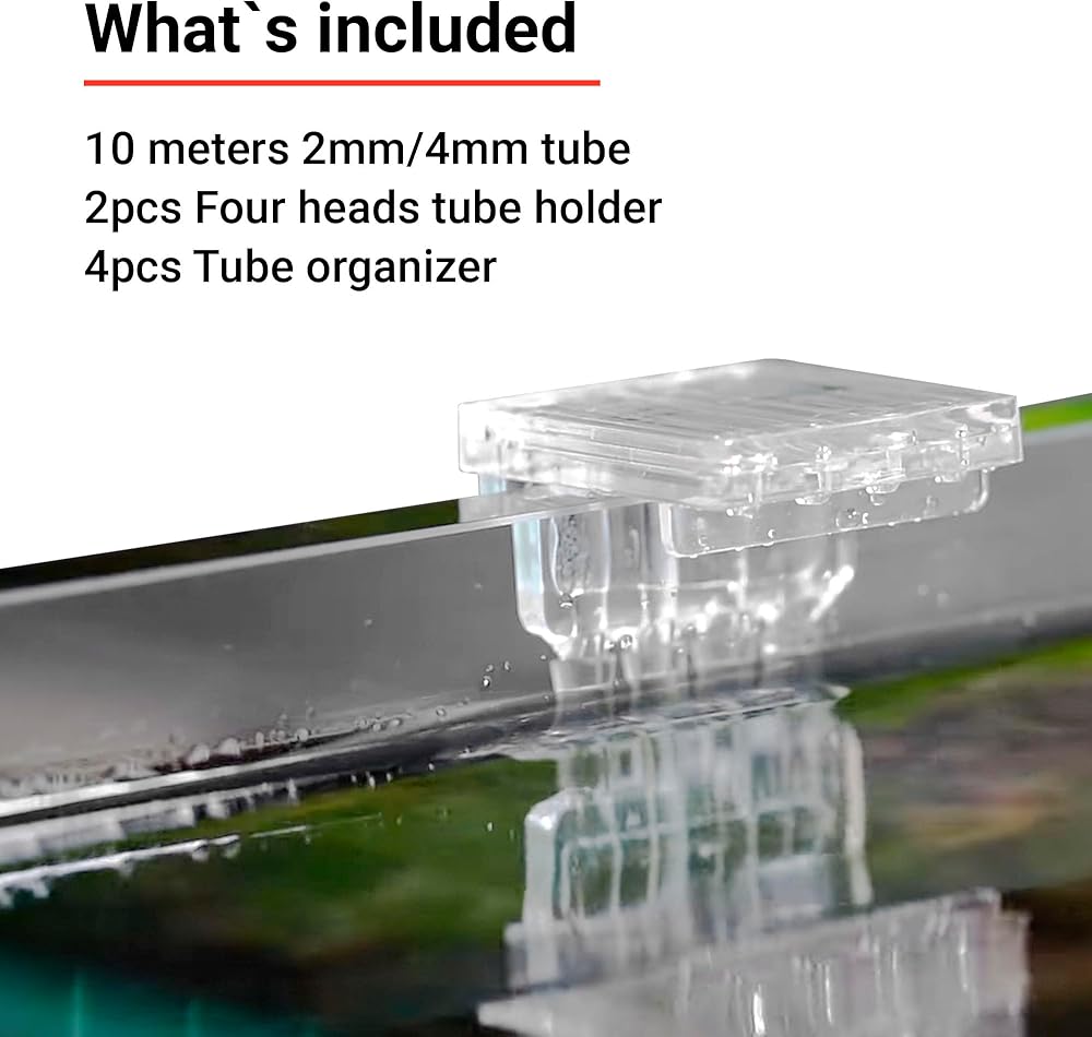 [Effortless Tube Management] Keep your aquarium tubes neatly organized and tangle-free. This Dosing Tube Holder includes 10 meters of 2mm/4mm tubing, ensuring you have all the tubing you need for seamless operation.