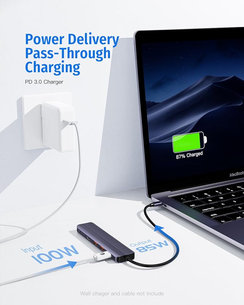 【100W power delivery supported】:The USB C Hub supports a 100W USB C pass-through charging, ideal for MacBook Pro/Air or and other USB c devices, your primary choice of USB C Hub.