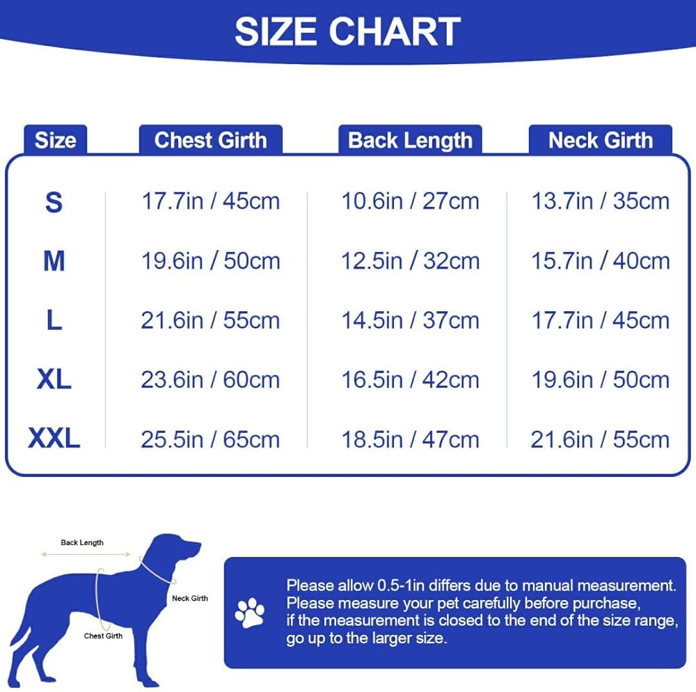 MULTIPLE SIZE OPTIONS: The pet jacket have 3 colors (black, red & blue) and 5 sizes (S-XXL) to select, and fit almost all breeds of dogs. Please measure carefully and check the size chart before purchasing to make sure you choose the right size.