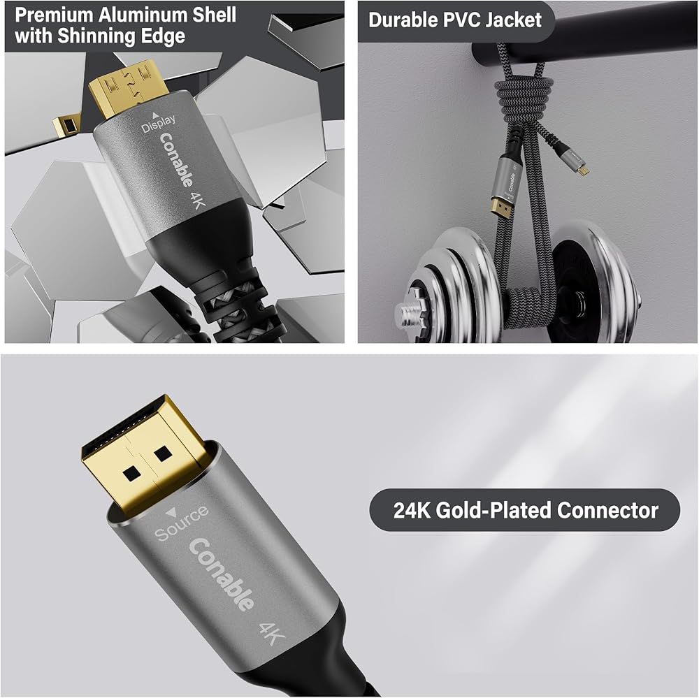 【4K@60Hz UHD Resolution】: The DisplayPort to Mini HDMI cable can support up to 4K@60Hz Resolution, downward support 4K@30Hz,2K@120Hz, 1080P@120Hz, provides life like and fluent frames to your portable Monitor screen, perfect for watching videos and playing games.