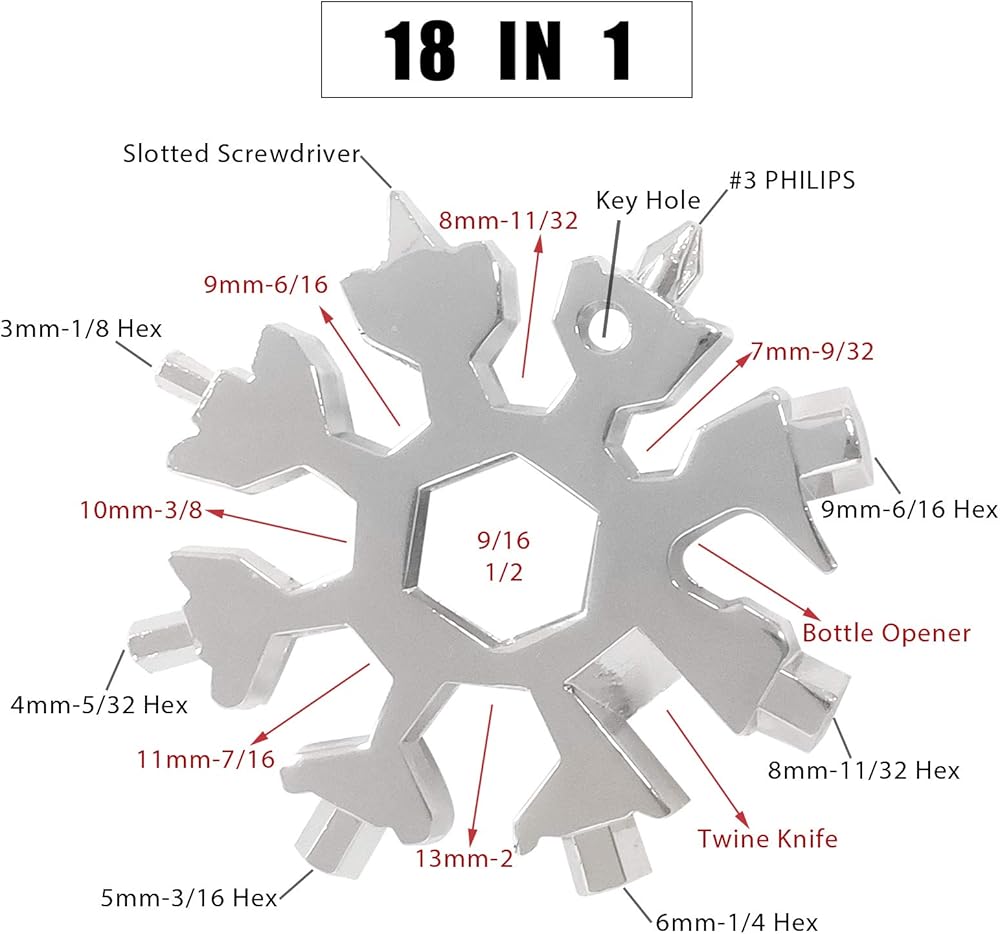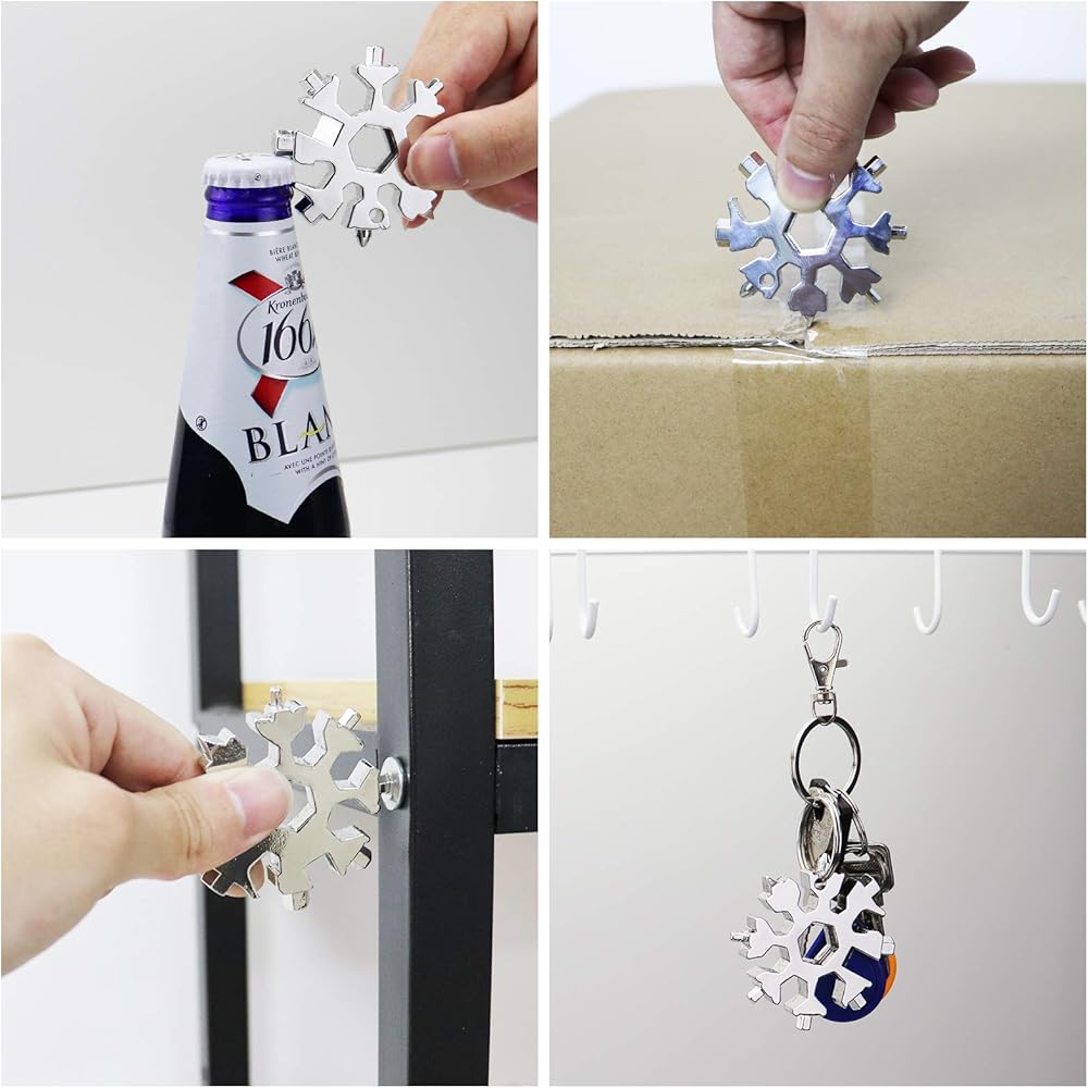18 in 1 Snowflake Multi Tool 9 Pack Stainless Steel Snowflake Bottle Opener/Flat Phillips Screwdriver Kit/Wrench, Xmas Gifts Stocking Stuffers for Adults, Durable and Portable to Take