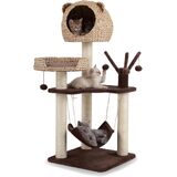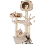 Tangkula Modern Cat Tree Tower, Multi-Level Tall Activity Center with Natural Sisal Scratching Posts, Hammock, Hand-Made Cattail Cute Condo with Funny Toy Balls