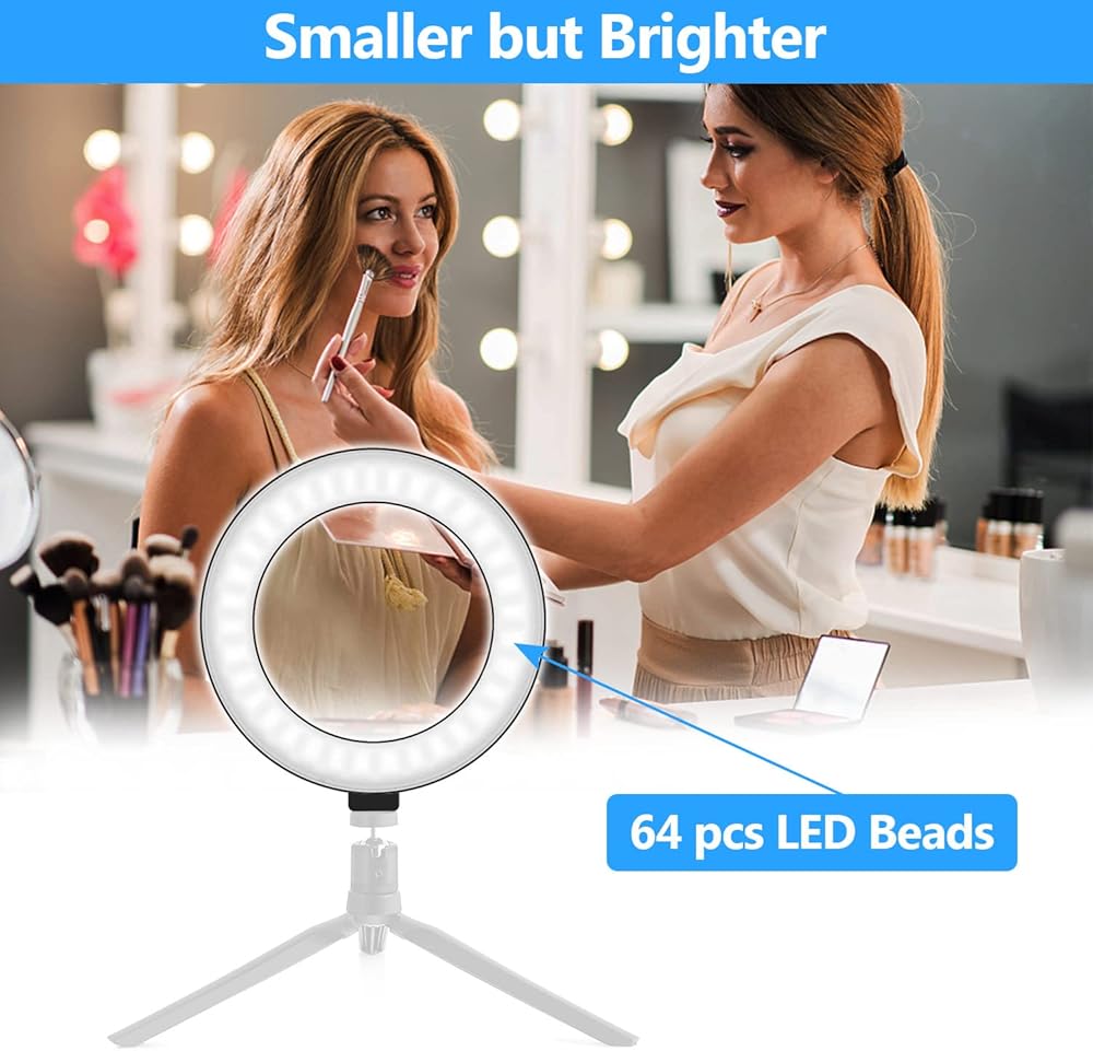 [ Small but Brighter ] This is 6 inch small size, but it has 64pcs led beads which is much brighter than other same size ring light