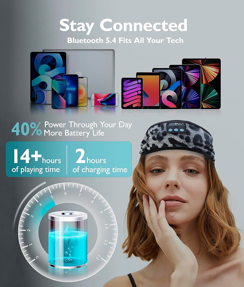 2-IN-1 SLEEP & SPORTS HEADBAND: Combines the functions of sleep headphones and a sports headband; enjoy music without the need for extra headphones; keeps hair and sweat managed during workouts; ideal for gym, jogging, yoga, and relaxation activities like meditation, travel, and insomnia relief