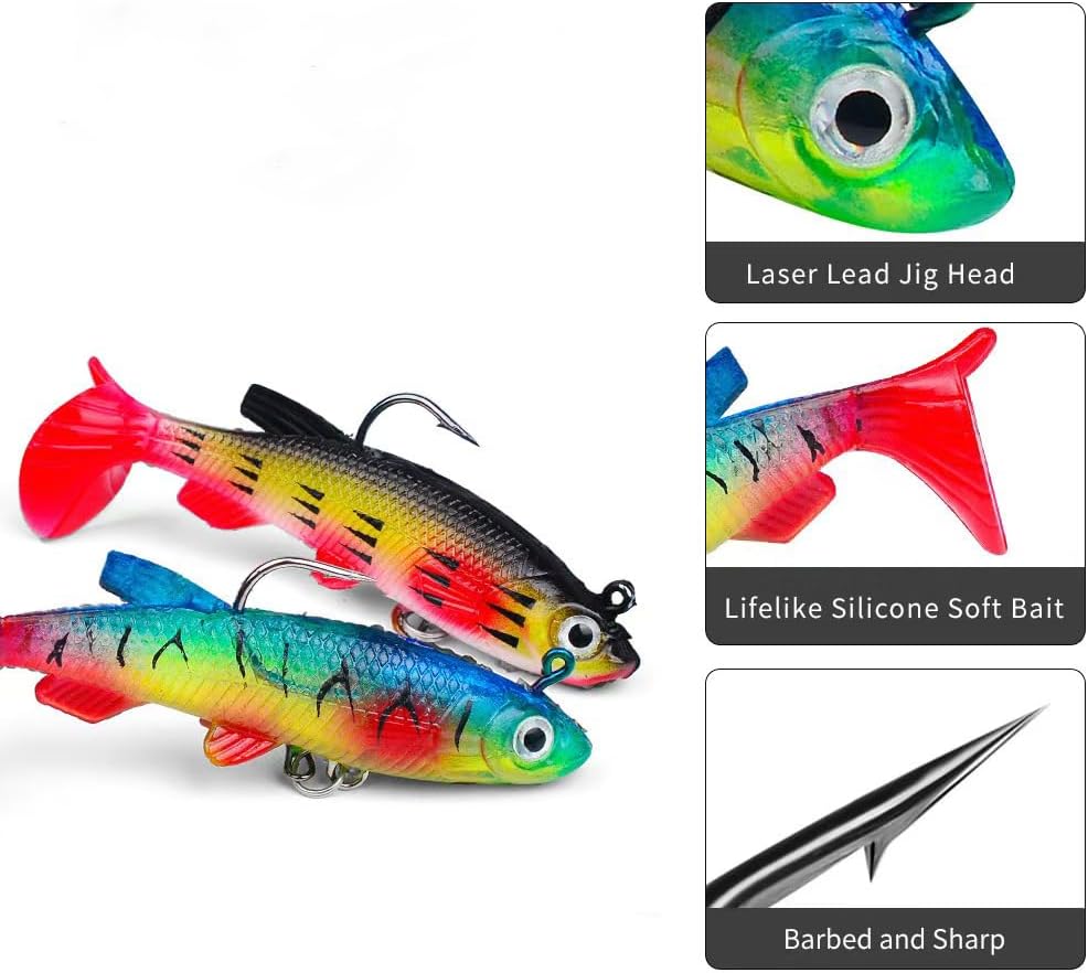 The Pre-Rigged Soft Fishing Lures feature 3D bionic fish eyes and a soft, lifelike body that perfectly mimics small fish in nature. These baits are designed to attract bass, trout, pike, catfish, and more, making them a versatile choice for both freshwater and saltwater anglers.