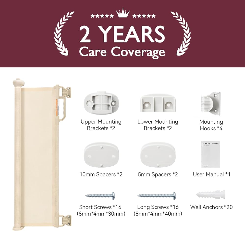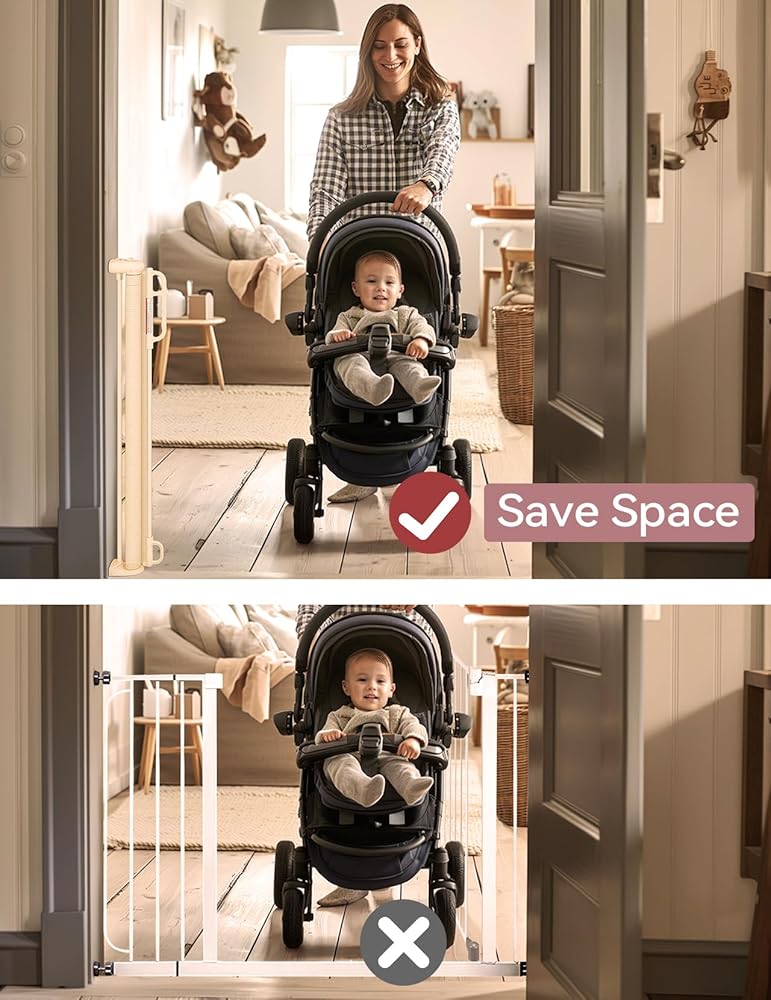 Safety: Retractable gate featured with double locking mechanism creates a safety home for your curious crawlers and keep them away from danger, providing a safe, closed off environment to play.