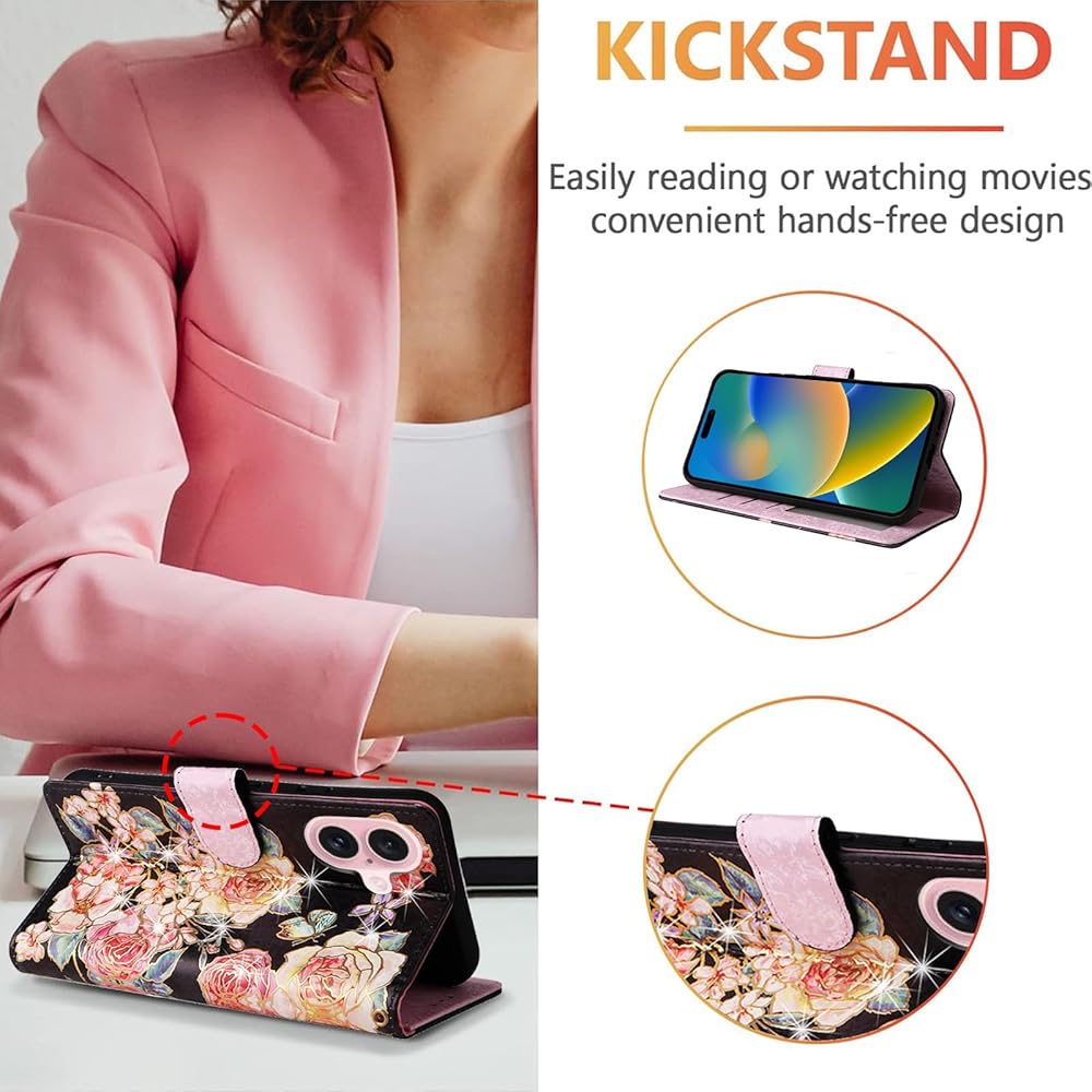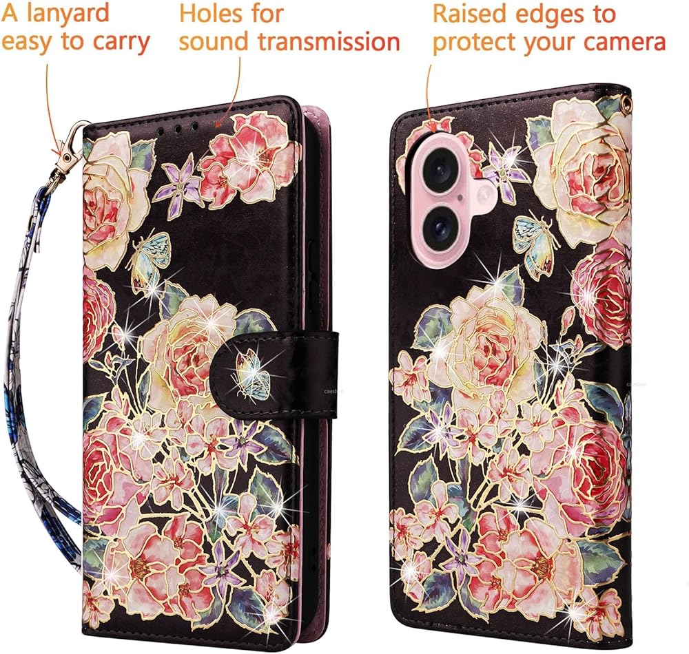 Compatible with iPhone 16 Pro Max: Please choose the correct model/size of your phone before purchasing; If you find any problem, please contact customer service; Pretty flower flip case for women and lady do not support wireless charging