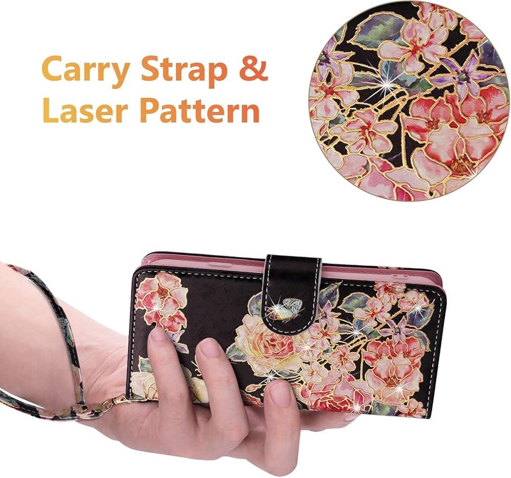 Magnetic Closure and Hand Strap: The phone case has a good and effective reversible magnetic buckle, which can open and close the phone case securely; The durable hand strap is very sturdy and convenient to hang the phone on your wrist