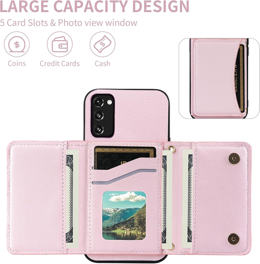 【Card Holder】: 5 card slots + 1 cash bag securely hold your cards and some cash without taking wallet outside Great for shopping, daily city walks, traveling and so much more.Plus, Featuring a flap closure with a magnetic snap to secure it in place, this wallet case will keep all your belongings safely in place.