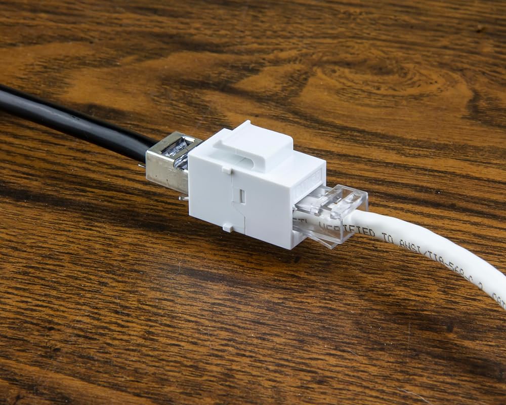 The Triplett Model CAT5-CPL-BK-10PK is a CAT5e RJ45 inline coupler used to join two Ethernet cables together to create a longer cable. Simply plug cables into both sides. Hard plastic black housing with 8 contacts/positions. 10 pack.