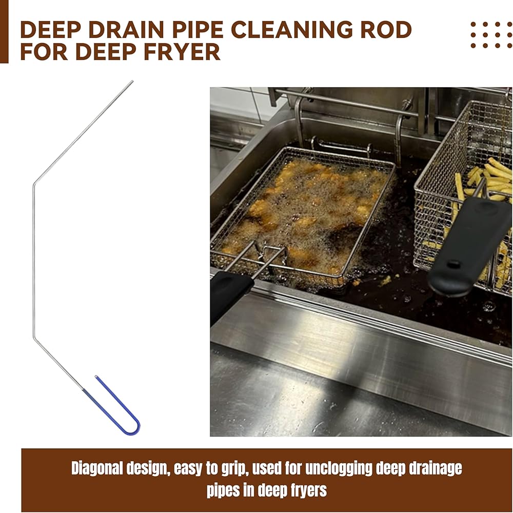 Fryer Deep Cleaning Rod: The fryer deep cleaning rod has a length of 24.5 inches, strong heat resistance, and is not easy to rust. It is used to clean the drain pipe of the Fryer and can penetrate deep into the pipe to remove food residue