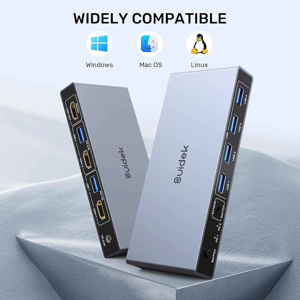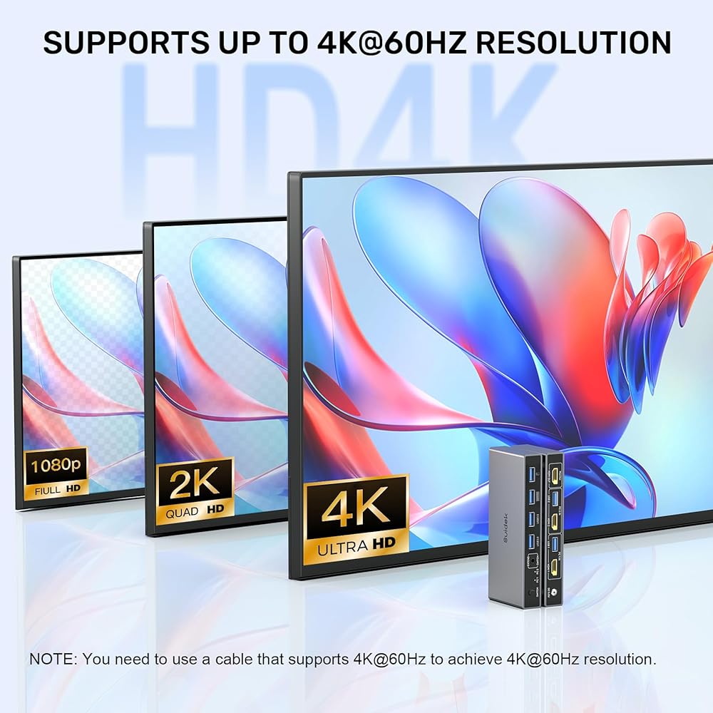 8K@60Hz HD Output: This display port kvm switch supports up to 8K@60Hz, allowing you to enjoy realistic and colorful visual effects. Note: To achieve 8K output, you need to connect the cable supporting up to 8K output. And make sure the resolution of the input and output are the same.