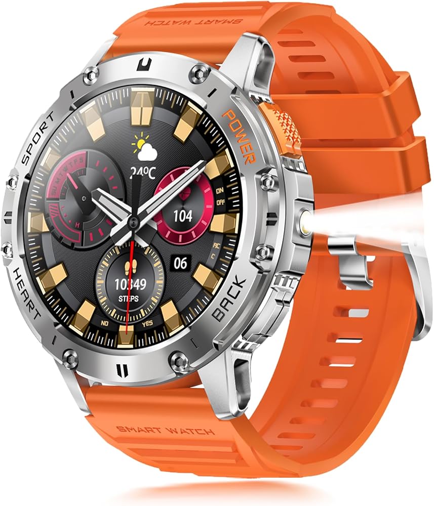 Military Smart Watches for Men with Flashlight, 170+ Sport Modes 1.43" AMOLED Screen, 530mAh Answer/Make Calls, Bluetooth for Android Phones and iPhone Compatible Heart Rate/SpO2/Sleep (Silver)