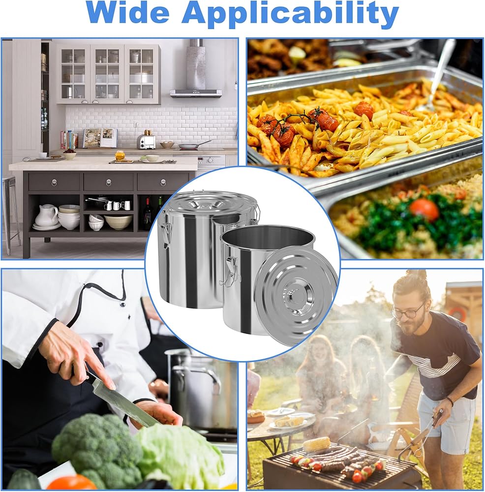 Stainless Steel Material:Our fryer grease bucket are made from high-quality stainless steel to ensure long-lasting durability; steel frying oil drums with locking clips ensure they are leak-proof, rust-proof and wear-resistant, making them the ideal solution for safe and clean oil disposal.