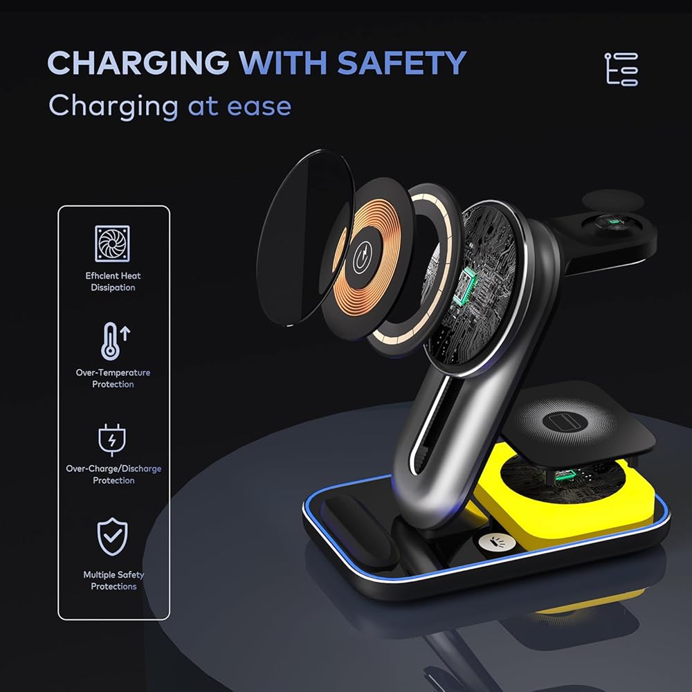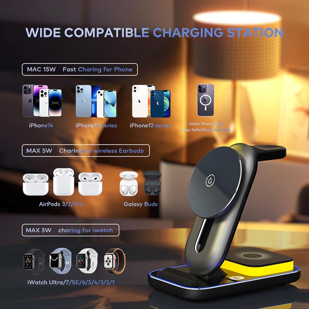 ✅ 4 in 1 Magnetic Wireless Charging Station - Effortlessly charge your iPhone, Apple Watch, and simultaneously with this all-in-one charging dock. The built-in night light adds convenience and reduces clutter by eliminating the need for multiple chargers.