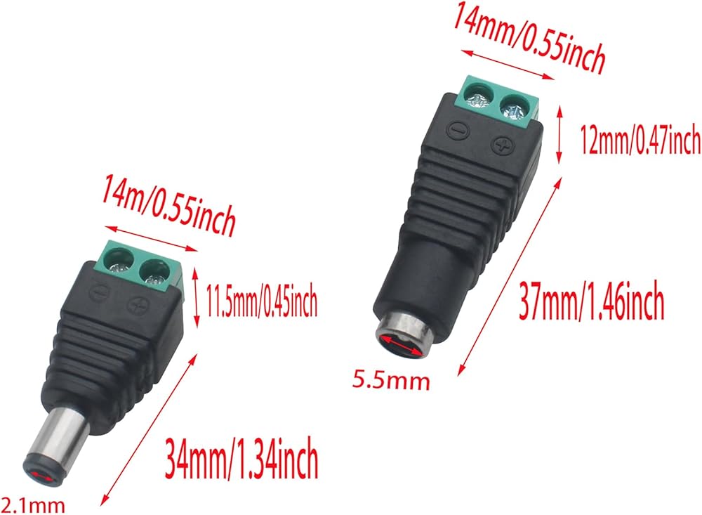 10 pairs 5.5 mm x 2.5 mm dc power jack plug barrel connector(10 pcs male and 10 pcs female)