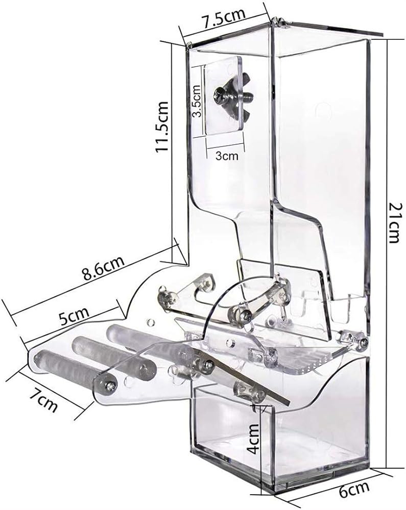 【EASY TO INSTALL】 Easy to fix to bird's cage. Use one screw and one small arcylic piece only! The bird feeder comes with clear acrylic bird perch that maks bird comfortable stands during food time.