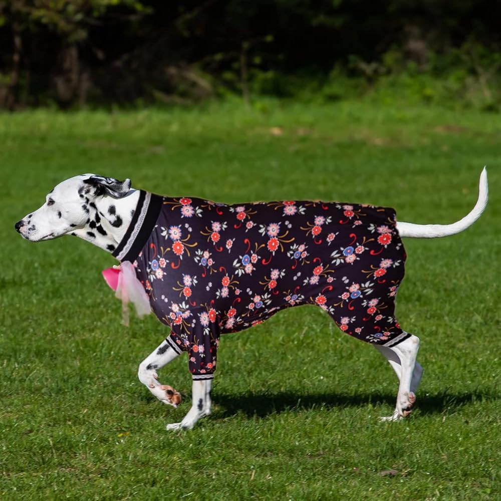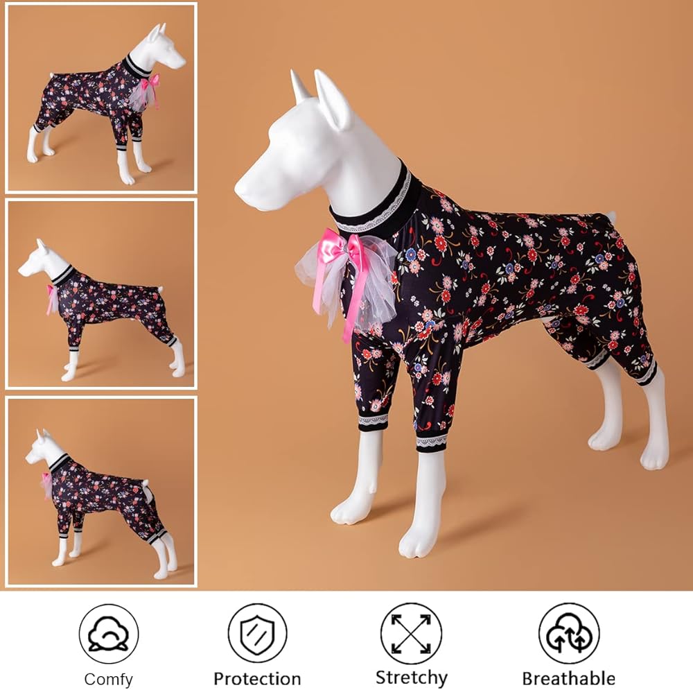 SUPPORT IN ALL SEASONS: dog onesie for surgery is soft & skin-friendly. It can be used in summer for UV protection, and can be used as a bottoming shirt to keep warm in winter. You don't need to buy pjs suitable for each season, you only need a lovinpet big dog pajamas, your dog will love this cute clothes.