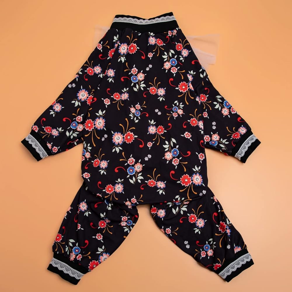 HIGH COLLAR BOWKNOT DESIGN: This is a high collar neck with Vintage Floral Black/Pink prints design. There is a adorable big bow design on the collar, we use high-quality, dog-friendly materials that are soft and comfortable, warm, but not stifling hot. The version fits the dog's body curve.
