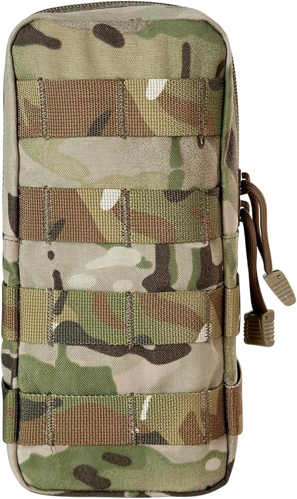 Package Contents: Quantity: 1 pack Size : 9.4" x 4" x 3" Material: 500D High quality nylon; This tactical pouch features a molle system on the back that will match most molle systems on the market. And with ykk two-way zippers, it lasts longer. Color: Multi-Camo, Black, Ranger Green.
