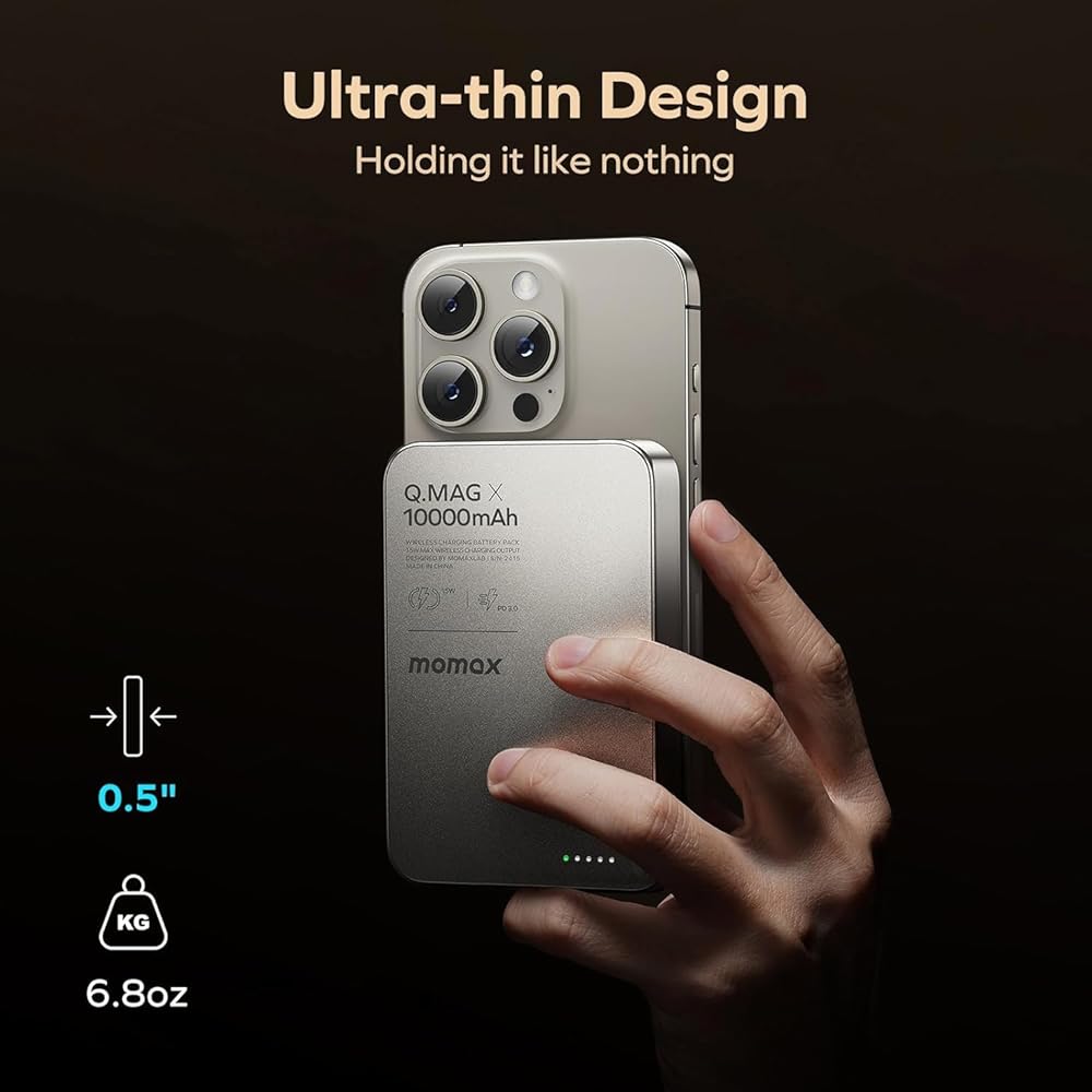 MOMAX Magnetic Wireless Power Bank 10000mAh, Ultra-Slim 0.5" MagSafe-Compatible Portable Charger, 20W USB-C PD Fast Charging, for iPhone 17/16/15/14/13/12 Series, Samsung Galaxy & Google Pixel