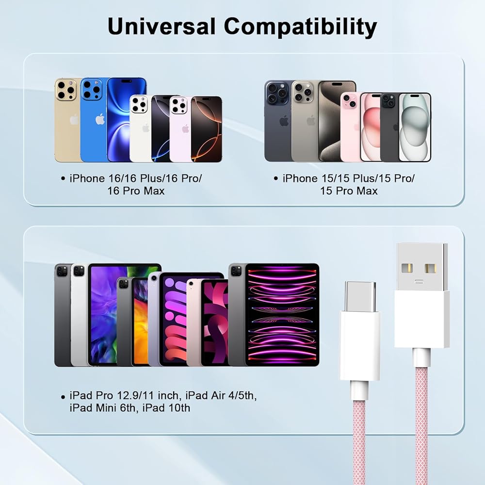 Equipped with MFi certified chip recognition function, the iPhone 16 15 14 usb c charging cable cord ensure that your devices are protected from over-current, over-voltage, over-heating.