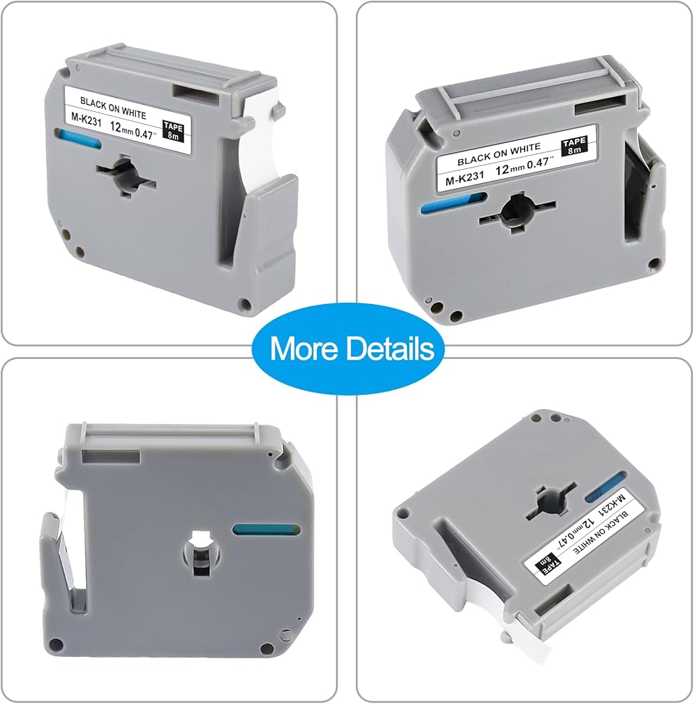 3 . Items: 5 pack Lonitul label maker tapes replacement for Brother ptouch label tape m tapes, 12mm(1/2 inch) x 8m(26.2 feet) of each pack. Compatible with Brother label tape m-k231(black on white), m-k431(black on red), m-k531(black on blue), m-k631(black on yellow), m-k731(black on green).