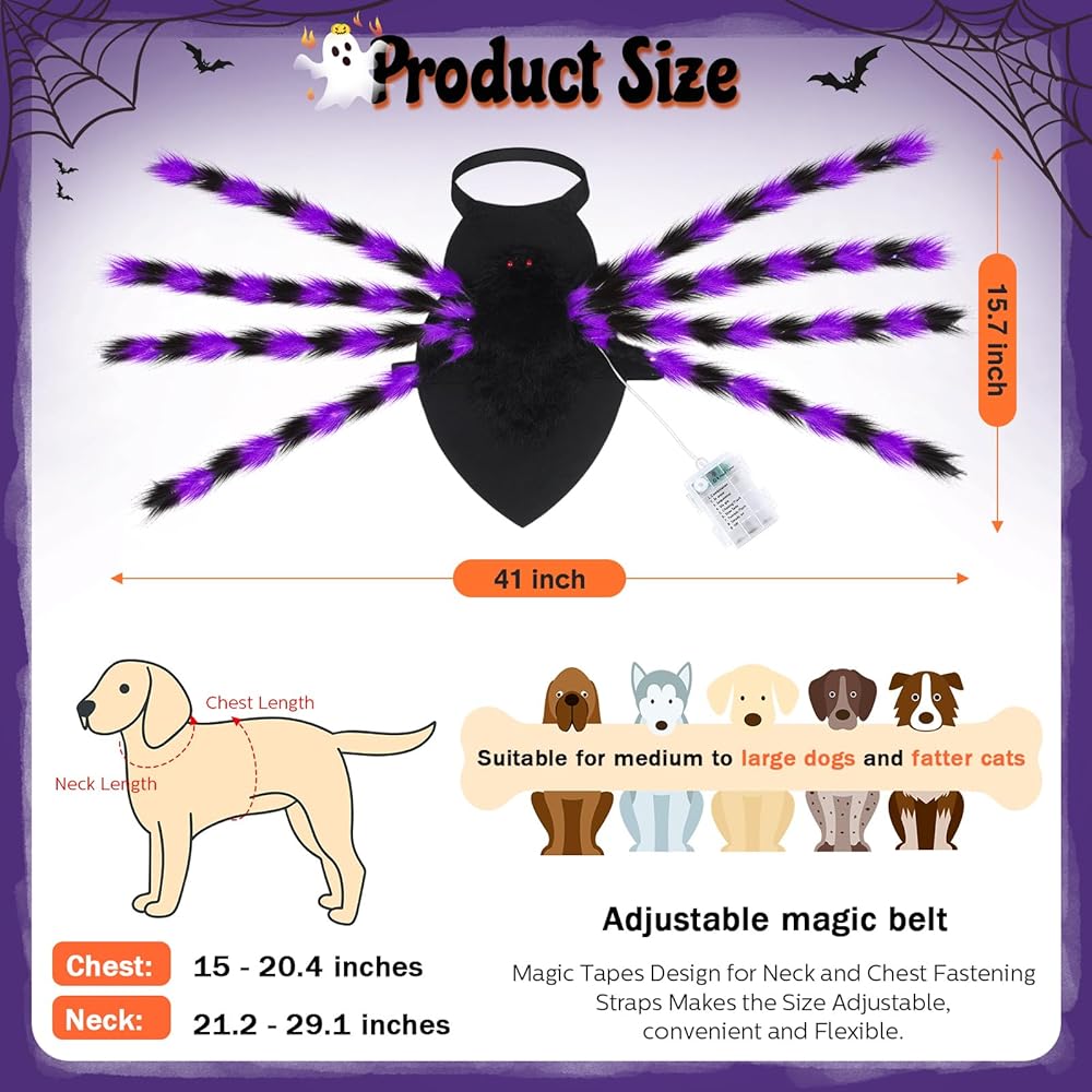 Eight lifelike legs add to the real spider feel making your dog the center of attention wherever it goes.