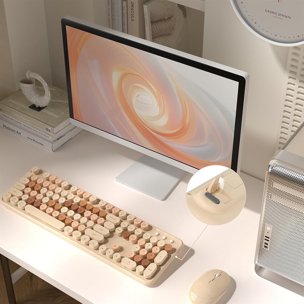 • Retro Colorful Design with Round Keycaps – Brighten up your workspace with this colorful wireless keyboard and mouse combo. The typewriter-style round keycaps offer a nostalgic yet modern feel, making it a perfect fit for home or office use