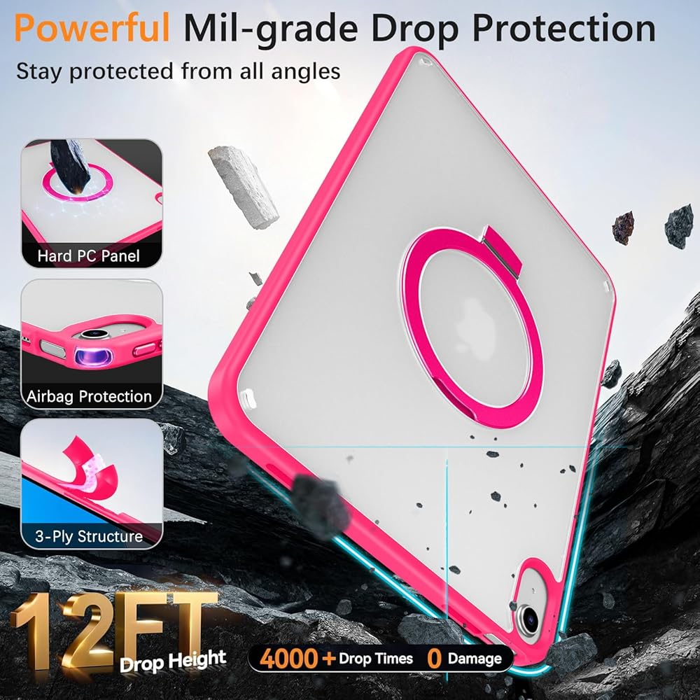 ♛【14FT Military-Grade Drop Protection】This iPad 10th Generation Protective Case has passed more than 8,000 drop tests from 14FT, and is verified by the military standard. On the inside edges, it has exclusive Shock 360° airbags and strong rubber bumpers on the outside edges for shock absorption if dropped on a hard surface. The internal air pad corners as bumpers are rounded and bubble out safely, giving extra room against corner shattering. Ensuring comprehensive protection that keeps your ipad in pristine condition.