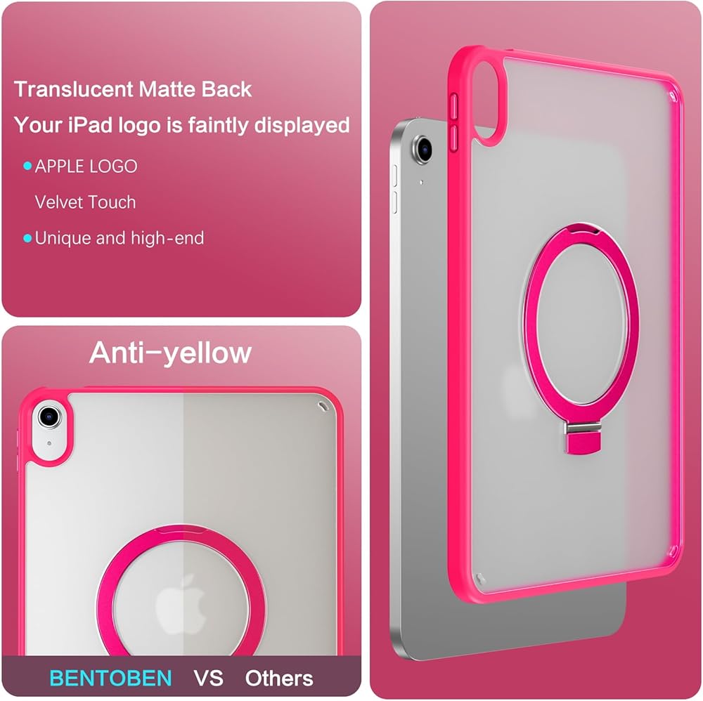 BENTOBEN for iPad 10th Generation Case with Invisible Foldable Kickstand Stand Ring Holder, Slim Thin Translucent Matte Shockproof Protective Cover for iPad 10th Gen 10.9 inch 2022 Release, Rose Red