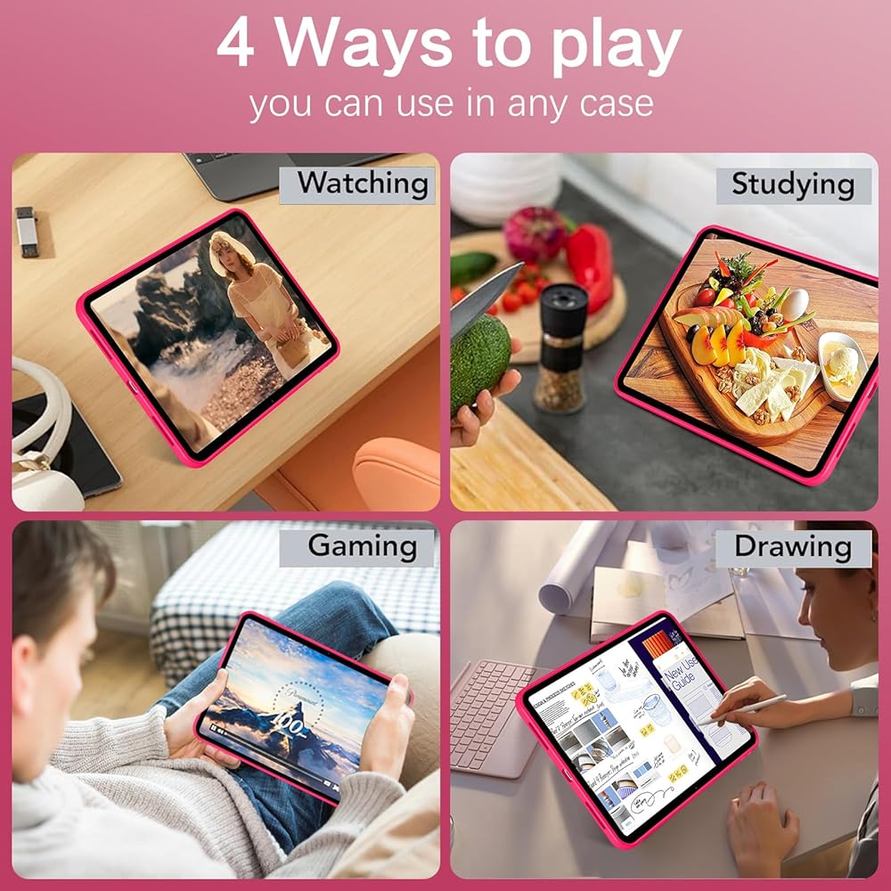 ♛【Flexible Invisible Stand & Hands-Free】BENTOBEN iPad 10th Gen Magnetic Stand Tablet Case has a built-in sturdy kickstand, which sturdily props up your ipad in landscape and vertical two modes. You can choosing best comfortable viewing angle when watching TV shows or facetime your family or studying/gaming/drawing based on your needs. The kickstand can seamlessly fold into the back without adding any extra bulk to the surface. The stand also makes it easier to hold in one hand.(Note: The kickstand can not rotate. Not INTERFERING the use of MagSafe accessories)