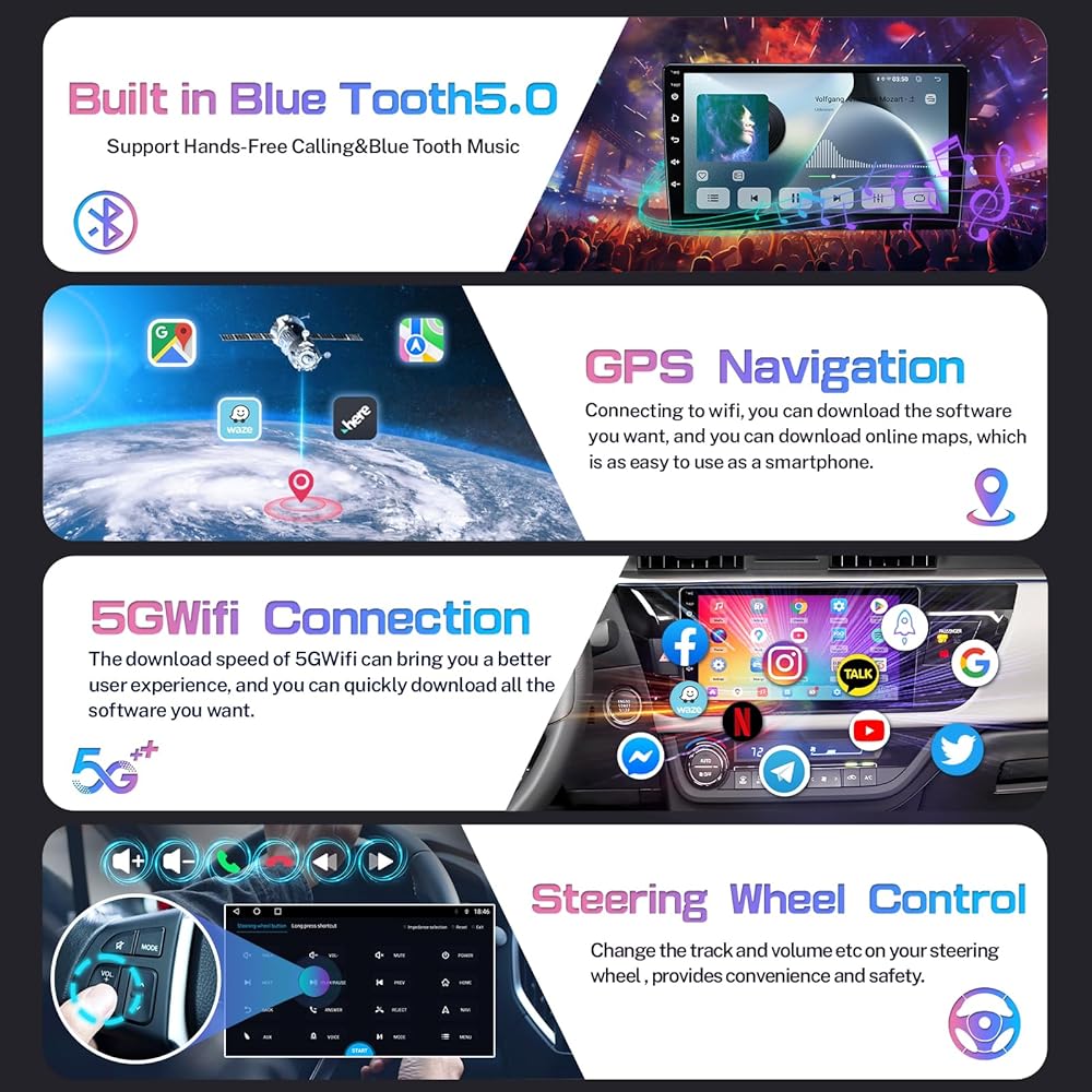 With Carplay Android Auto: This corolla stereo supports wireless carplay and Android auto; Seamlessly connect your phone via bluetooth to use various functions such as GPS navigation, listen to music, send/receive messages, make phone calls,siri asistance,etc; Improve your driving safety; More convenience and fun for driving; Just enjoy your journey
