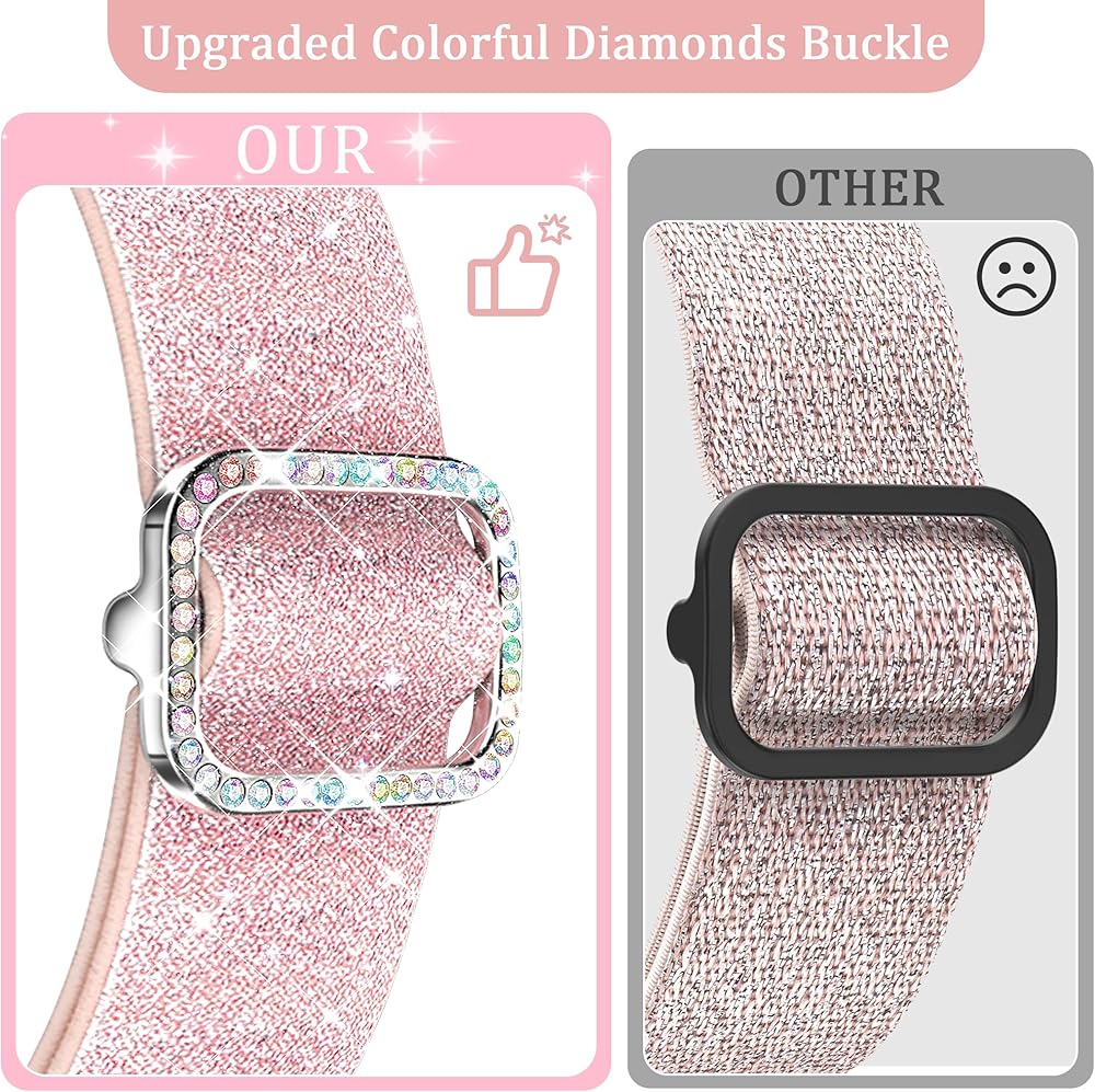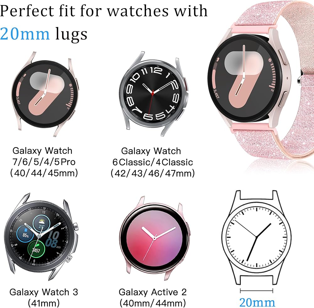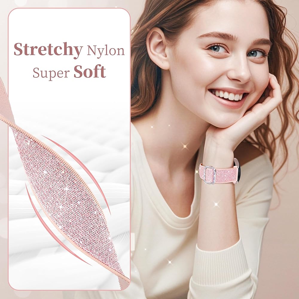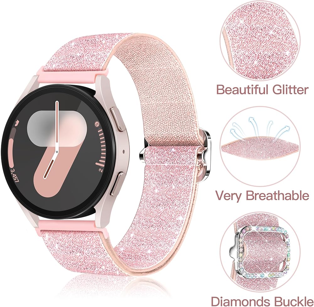 【Sweat-Absorbent and Breathable】 The bling nylon Samsung galaxy watch 6 band has excellent breathability and sweat absorption. Whether you are jogging, keeping fit or doing yoga, it can ensure that your wrist stays fresh. Slap on this Stretchy Samsung watch bands for women, you can easily dive into any sport to your heart's content