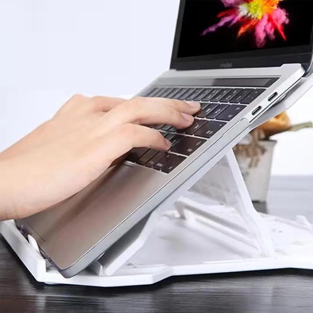 8 adjustable angles, adjust the most comfortable position Load capacity: 30KG Product size: 280*270*15MM Portable holes, portable, foldable, ultra-thin into the computer bag, travel more convenient Multi-hole hollow design for more powerful heat dissipation Free disassembly, easy to assemble