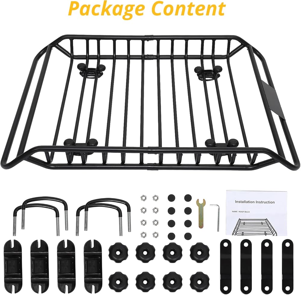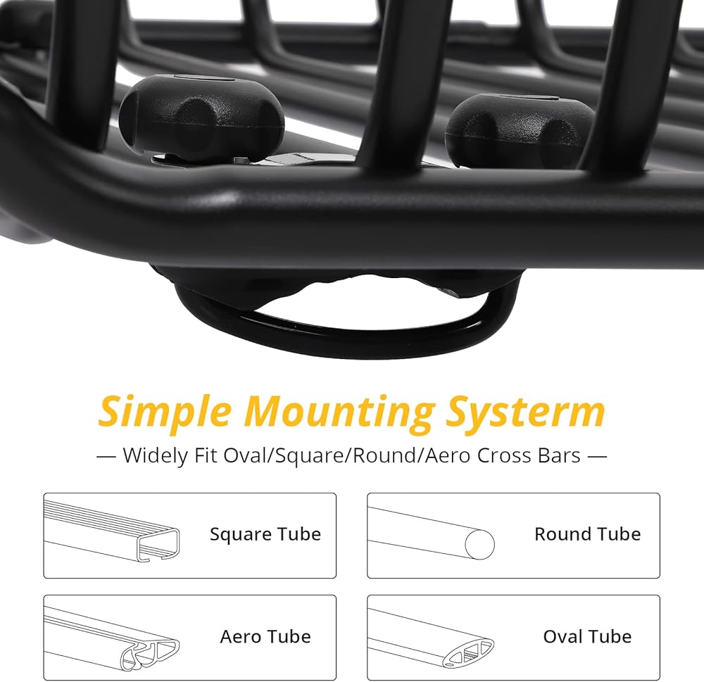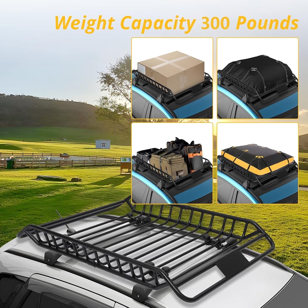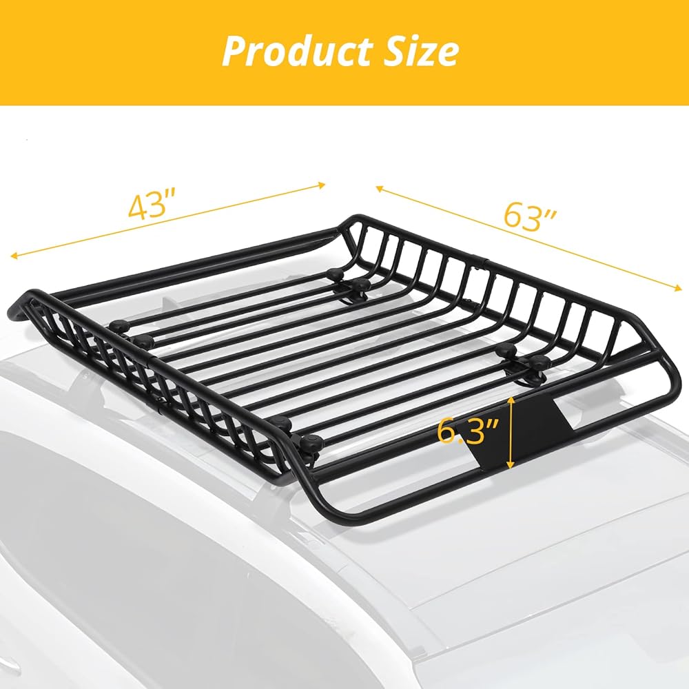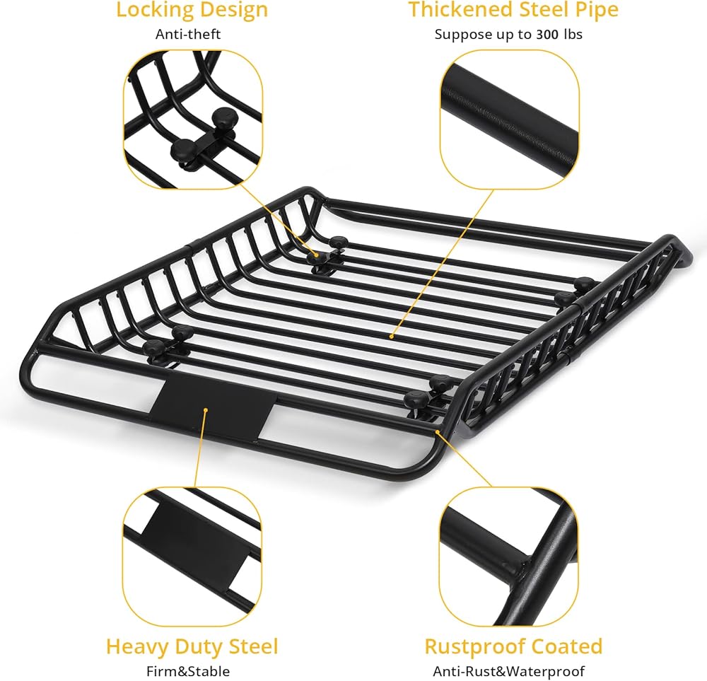 【Preminum Material】Our Rooftop Basket is made of High Tensile Heavy Duty Steel,and the bearing pipe at the bottom was thickened,so that it is strong and stable,maximizes the cargo load capacity to 165lbs.