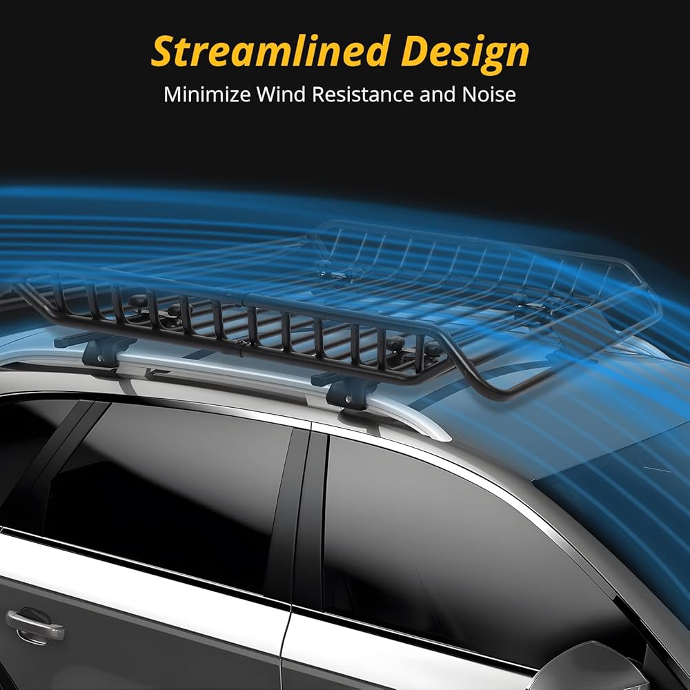 【Secure Protection】Bottom bars and side rails keep your items secure during traveling,streamlined design protects cargo from wind damage and reduce wind resistance.