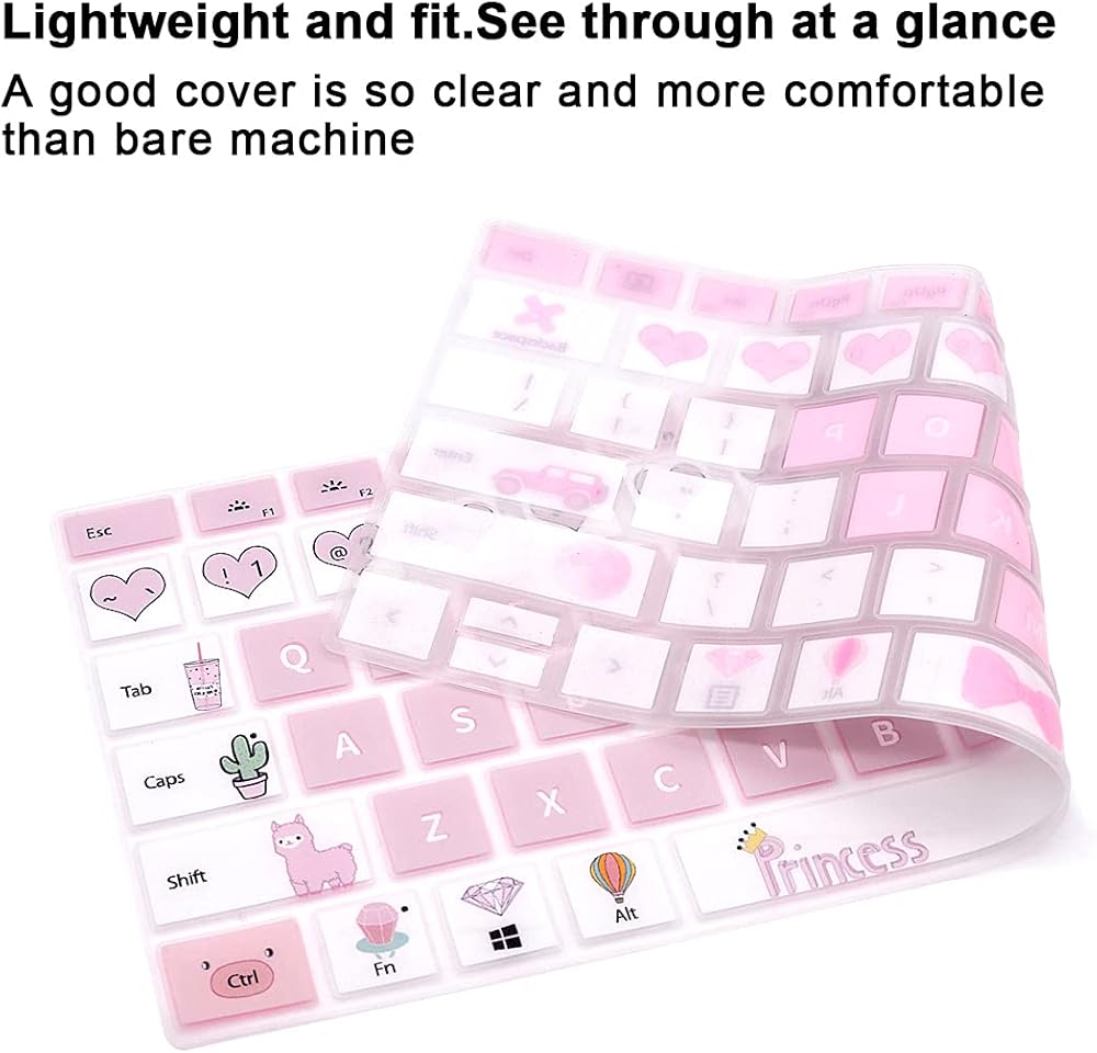 4)【ADVANTAGE】Extra slim silicone skin, made it easier for typing The keywords are printed on the keyboard cover