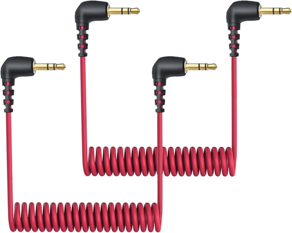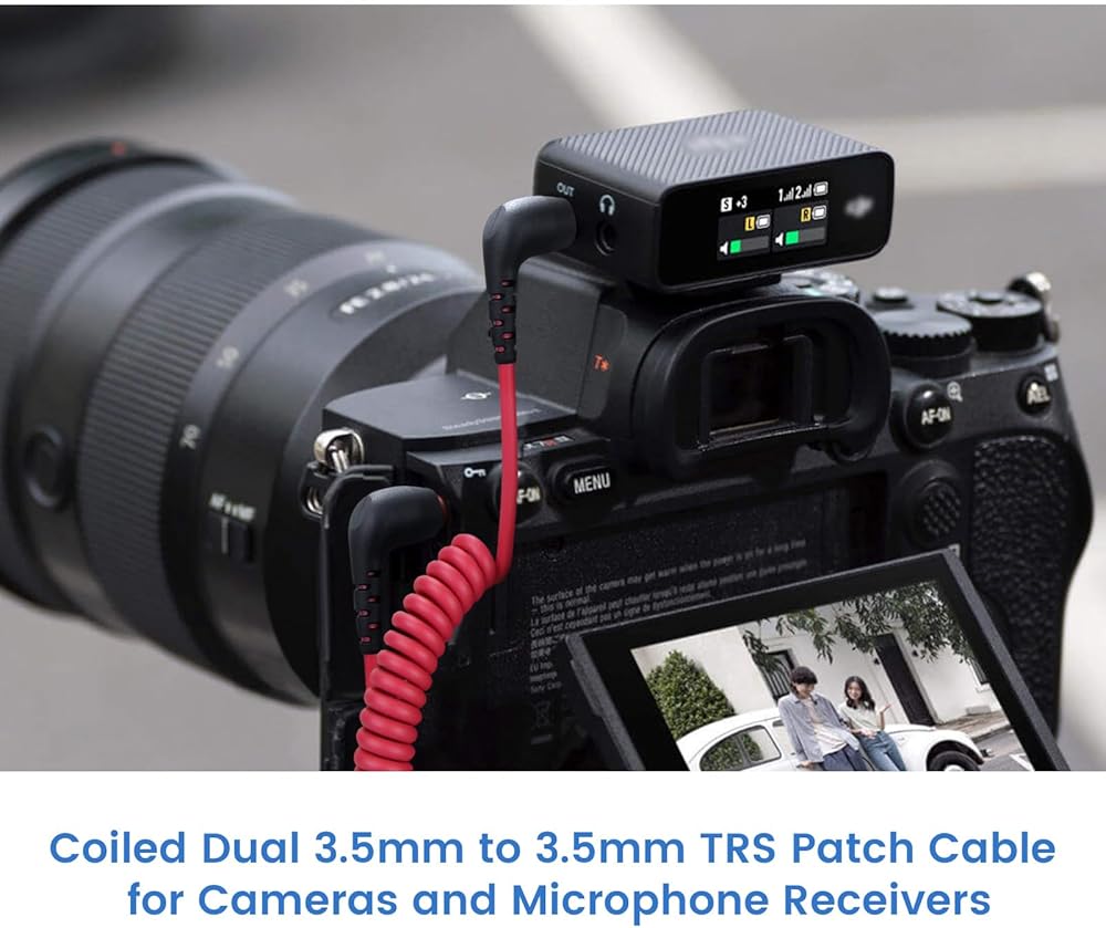 2-Pack 3.5mm Microphone Cable Compatible with Rode Wireless Pro / Wireless Go 2 / DJI Mic 2 and Hollyland Lark M1 M2 150 Max Duo, Coiled Dual 3.5mm TRS Patch Cable Audio Mic Cord for DSLR Cameras