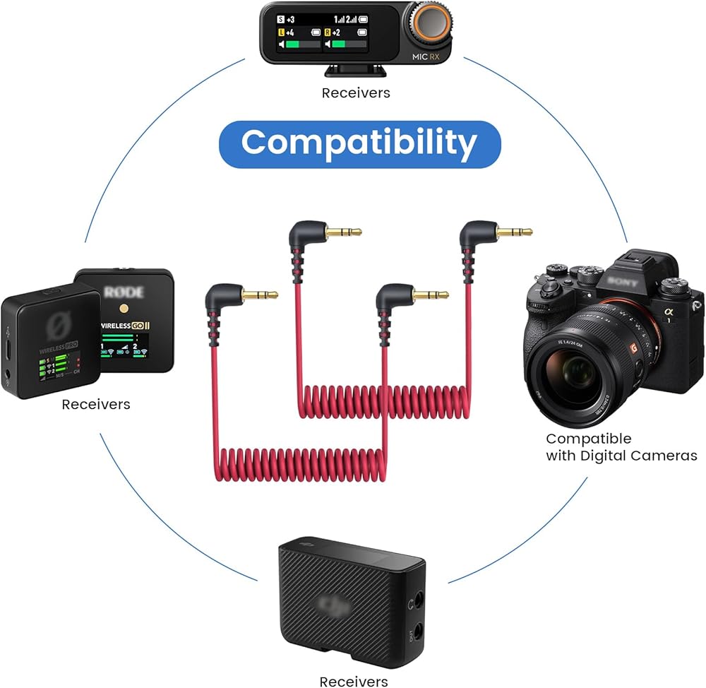 Compatible with DJI mic 2 and mic 1 microphone receivers; And compatible with Rode wireless pro, wireless go 2, wireless go ii, wireless go, wireless me microphone receivers; And compatible with Hollyland Lark M1, Lark M2, Lark 150 and Lark Max Duo microphone receivers; Also compatible with Canon / Nikon and other DSLR cameras with 3.5mm mic jack