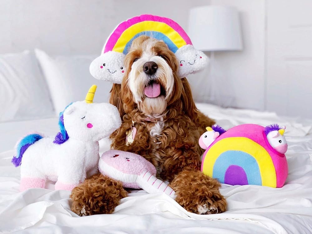 Dog Squeak Toys - Relieve your pup's boredom with this rainbow squeaky toy. The fun rainbow shape provides the chew and squeak that every dog craves in a toy!